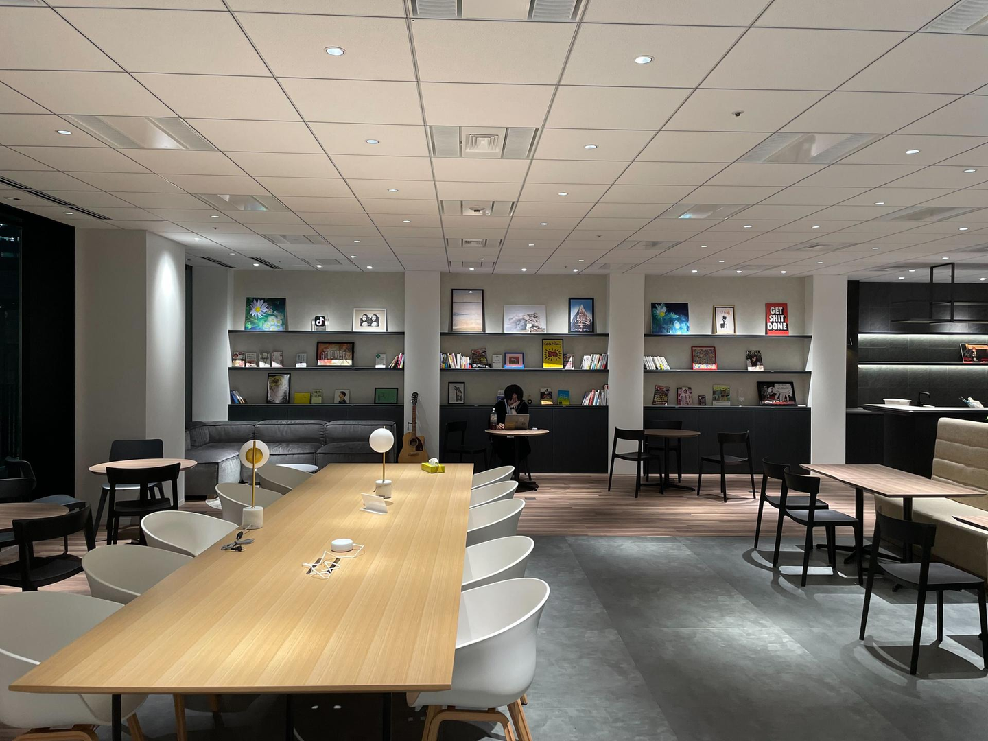 こちらもフリースペースです!奥には本棚があり、気になる本を手に取って読むことが可能です。