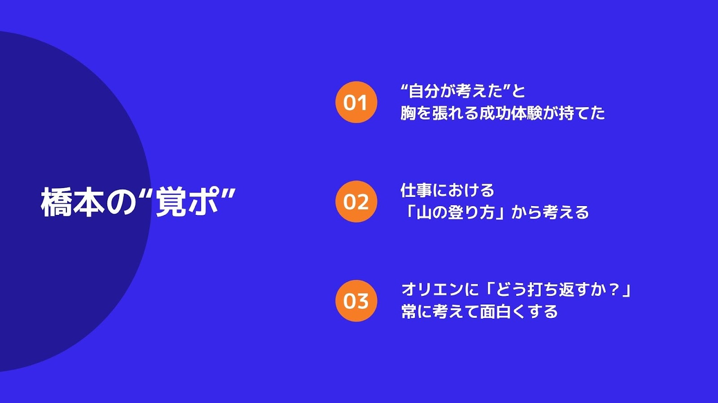 橋本:「自信」でいうと、僕は前職が広告代理店の営業で、一応は広告も触ってきたし、企画っぽいこともやってたし、ぶっちゃけ自信ありげに転職してきたんです。でも、入社してすぐに「トレーナー」という役割の大先輩から指導いただいて、「企画を考えるとはこういうことか、自分はなんて上っ面の仕事をしてきたんだ」とカルチャーショックを受けて。