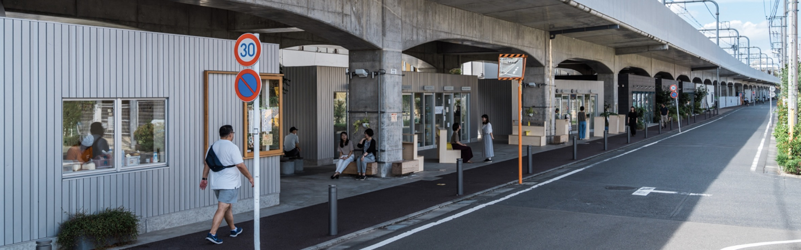 東京の大動脈であるJR中央線の高架下で、郊外の風景に溶け込みながらも目を惹くおしゃれな空間。建築家によるこだわりのデザインが随所に感じられるシェア施設の一角に、自社オフィスを構えています。