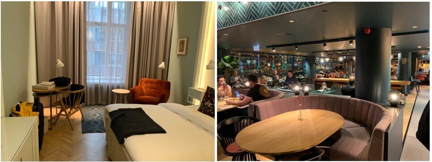 せっかくなら勉強も兼ねて良い空間に滞在しようと、リサーチにリサーチを重ね選んだホテル。歴史的な建物をリノベーションしたクラシックな佇まいで、artekを始めとする北欧家具も堪能出来ます。