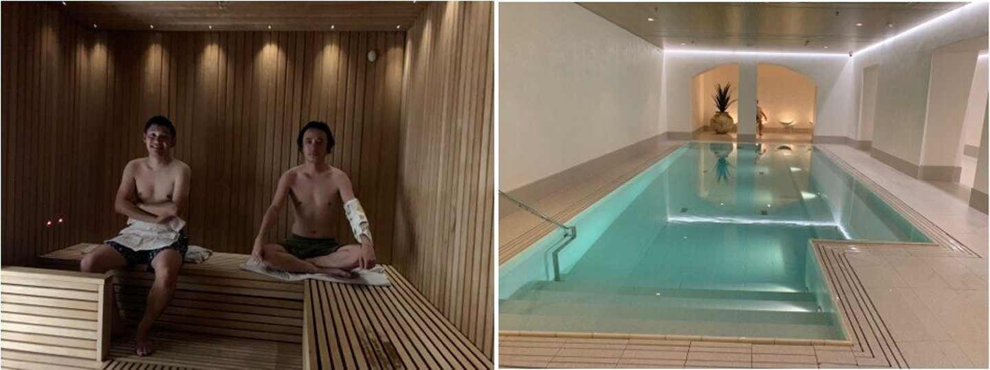 着いてまず行ったのはサウナ。さすが、サウナのデザインも素敵です!そしてボタンを押すとロウリュしてくれるシステムがかっこよく、ただただ雰囲気に圧倒!水風呂は一人がやっと入れる大きさで、しかも深いんです。立って入るイメージ、更にめちゃくちゃ冷たい。私は脚を入れた瞬間に諦めました(笑)