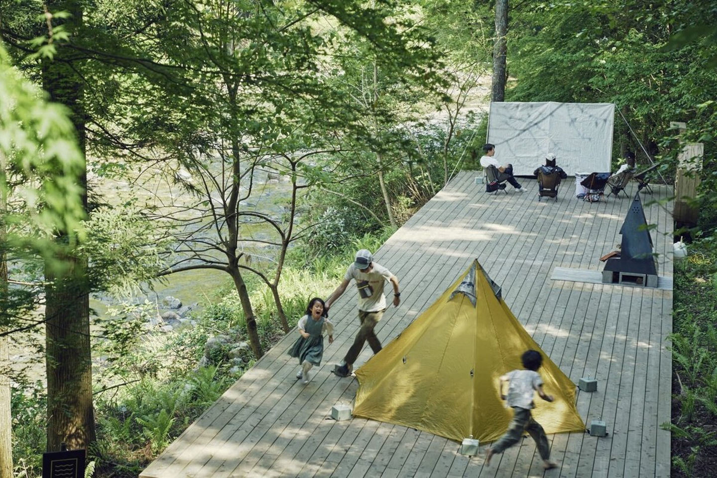 川にせりだすように作られたウッドデッキサイト「リバーエッジ」