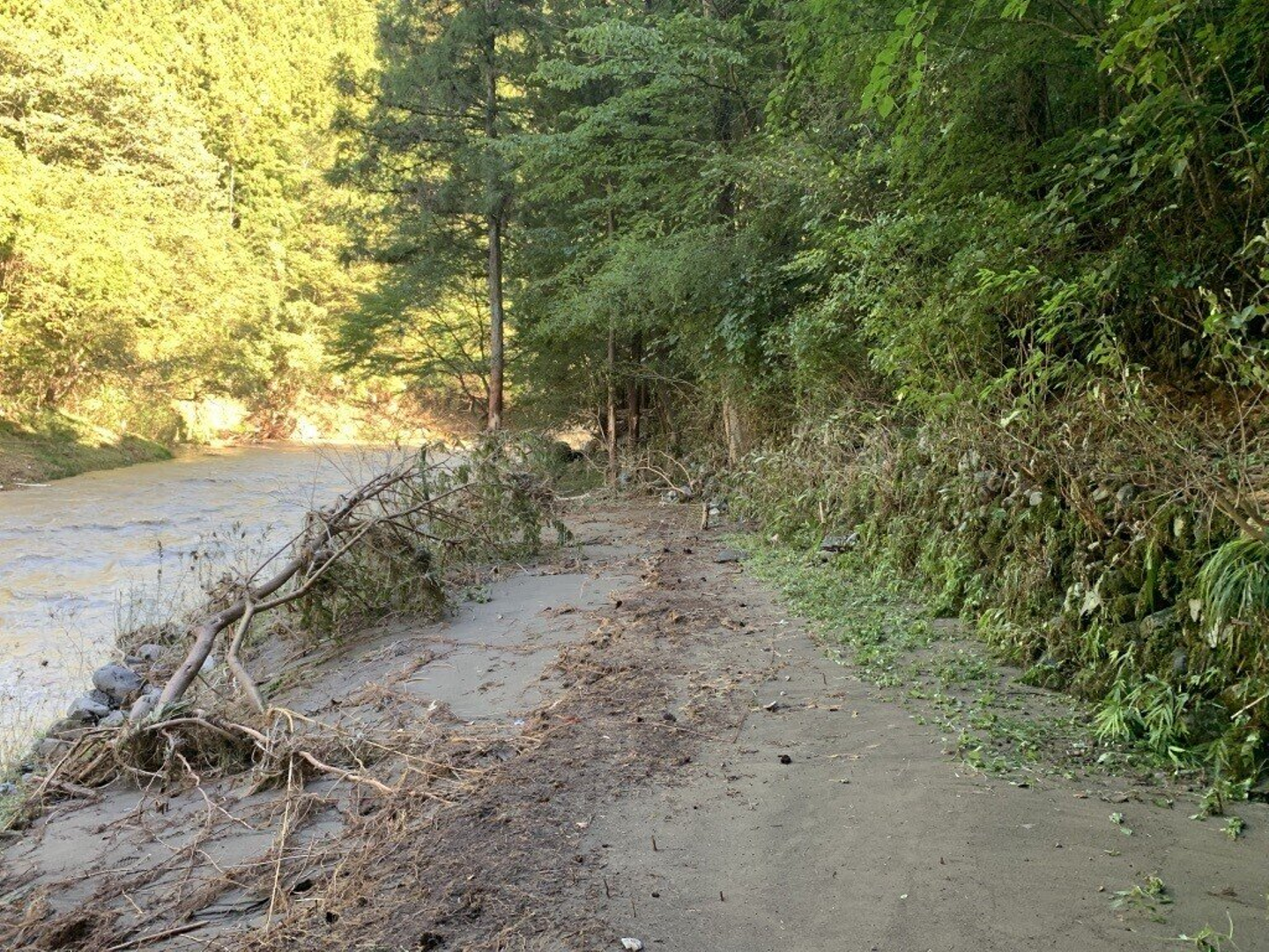 翌日には一人で檜原村に向かいましたが、道路は所々寸断され檜原村へ到着するのもいつもの倍以上の時間がかかりました。さらに現地に着くとリバーエッジには全く何もありません。