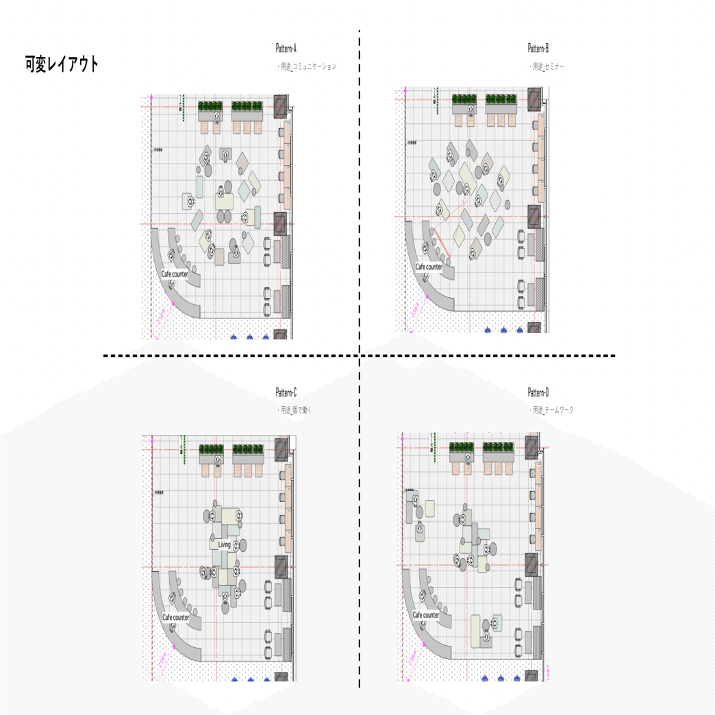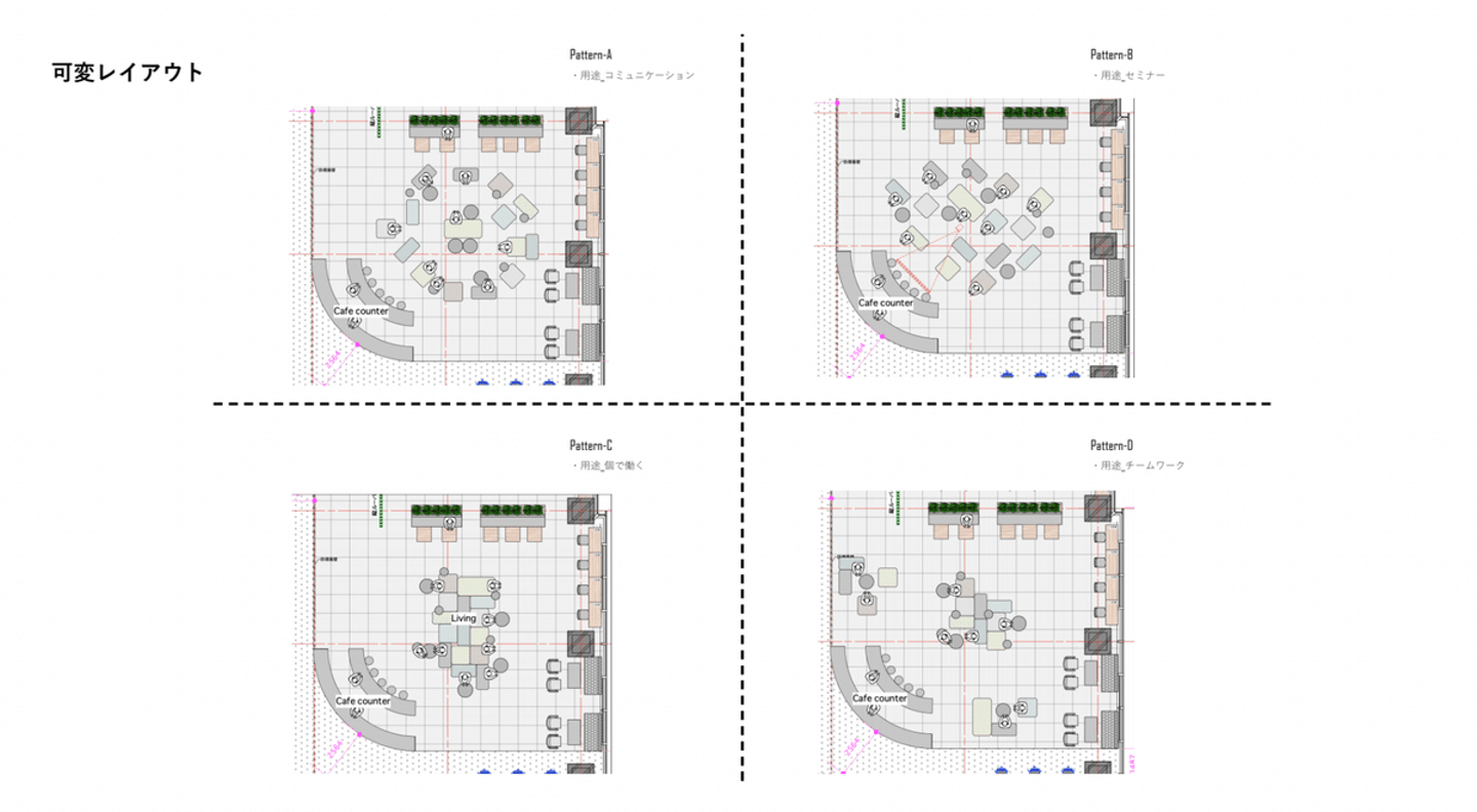 「確定しきらない」「多様性」を実現するために、可変性の高いレイアウトを検討。