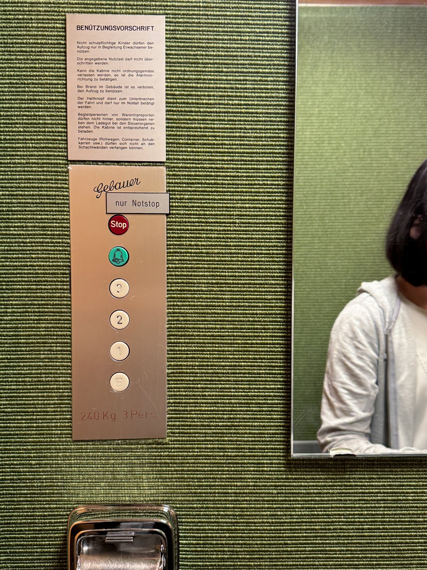 家具や内装は地元の大工が手掛けているそう。エレベーターが手動の扉で、この建築がかなり古いものだということがわかります。クラシカルな部分を残しつつ、表層的に上手にリノベーションがされていました。