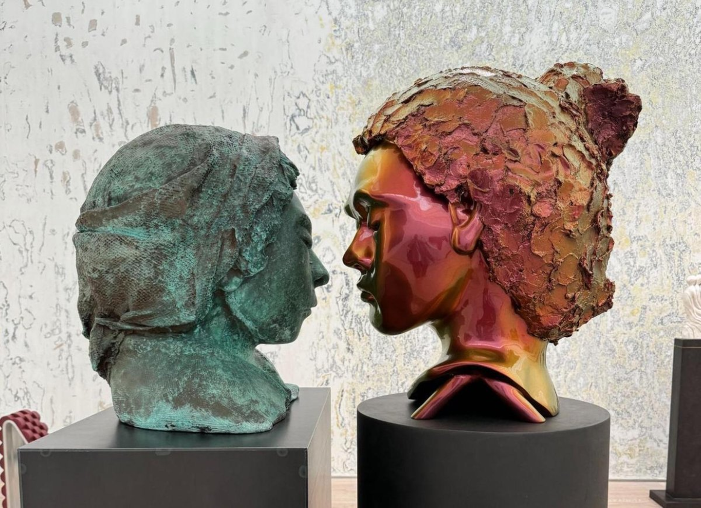 ペアで置かれた彫刻
