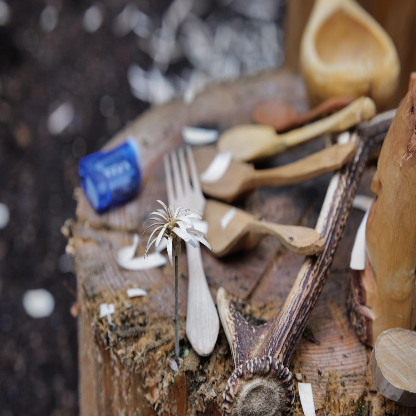 森に隣接した生活だからこそ、ナイフを使って身近な道具を作る文化が根付いているそう。
