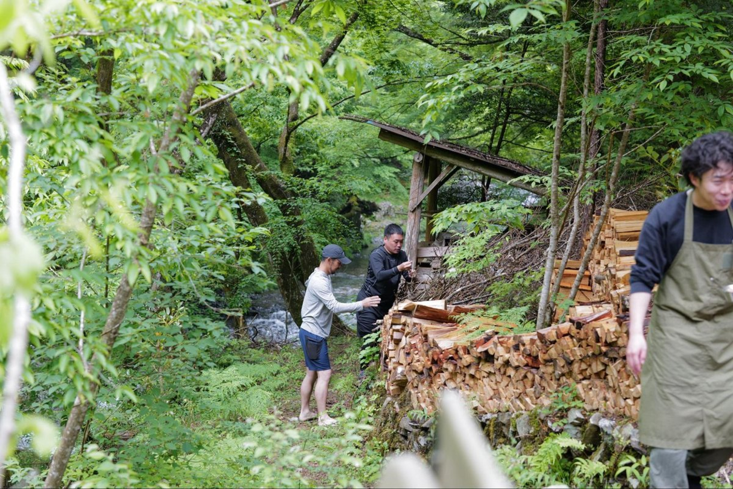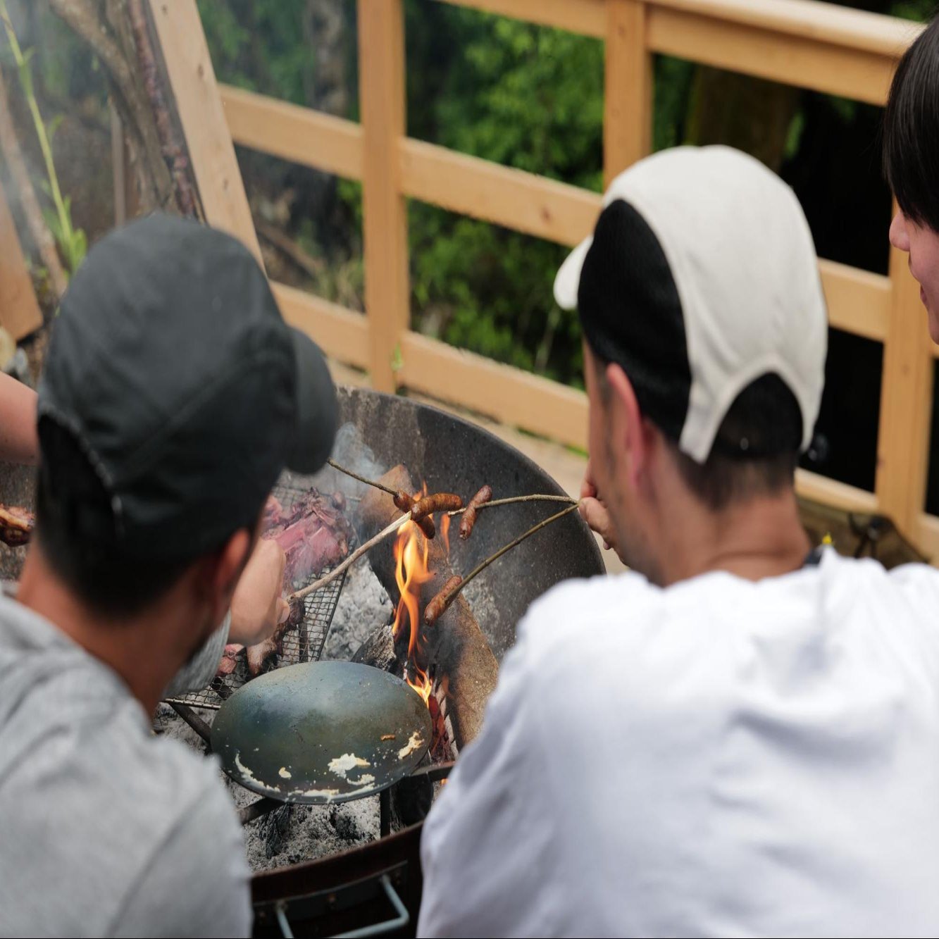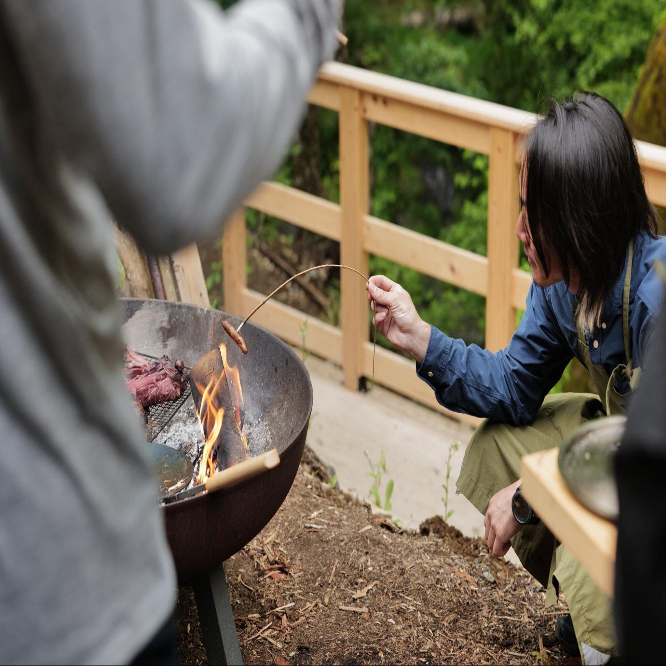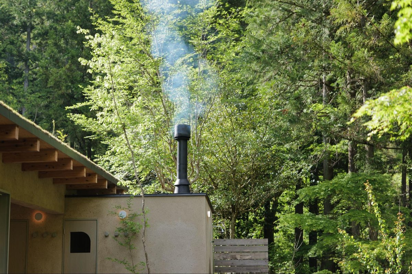 東京とは思えない手付かずの自然に囲まれた場所で、自らの手で薪を焚べて、薪ストーブのアウトドアサウナや焚き火料理などを楽しむことができるHINOKO SHELTER。