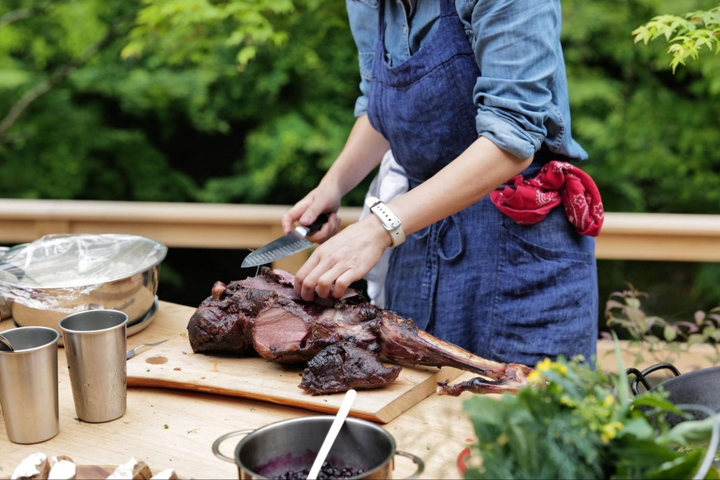 今回はトナカイの仲間である鹿のお肉を使って、じっくり焚き火で火を通しながらアレンジ料理を作っていただきました。