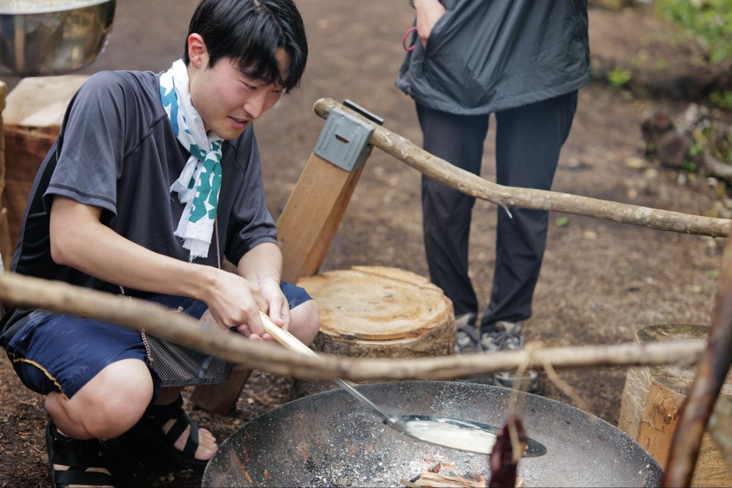 クレープ作りは難しいイメージがあったのですが、実際には焚き火でも簡単に作れて、皆さん良い焼き加減でした。