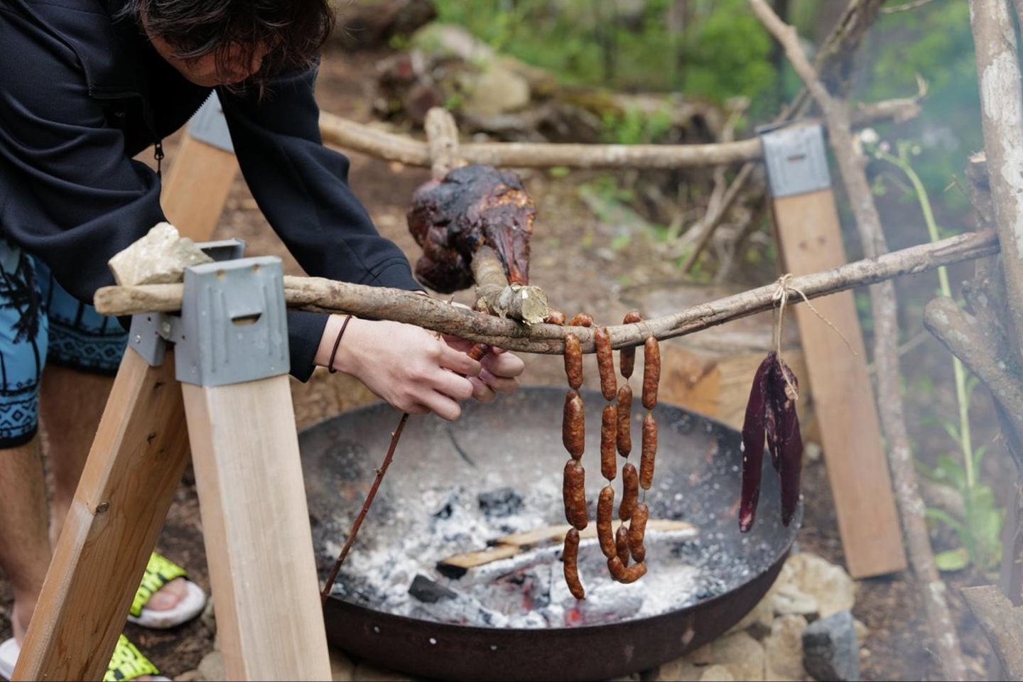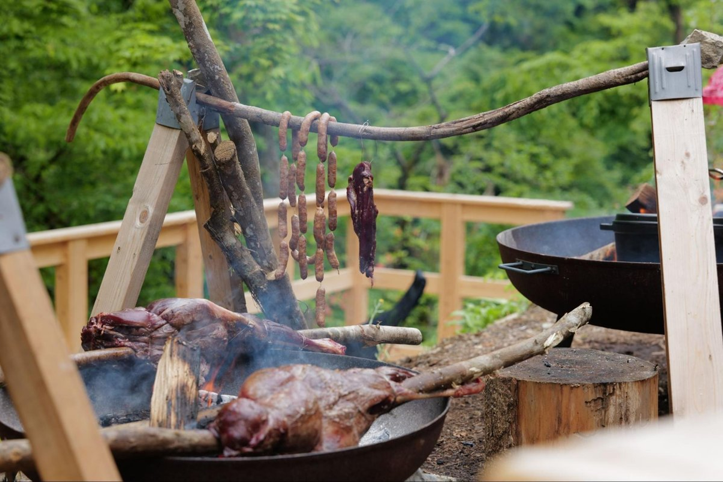 じっくり火にかけられた鹿の解体ショーはよだれを飲み込みながら思わずカメラを向けたくなる瞬間。ゴクリ・・