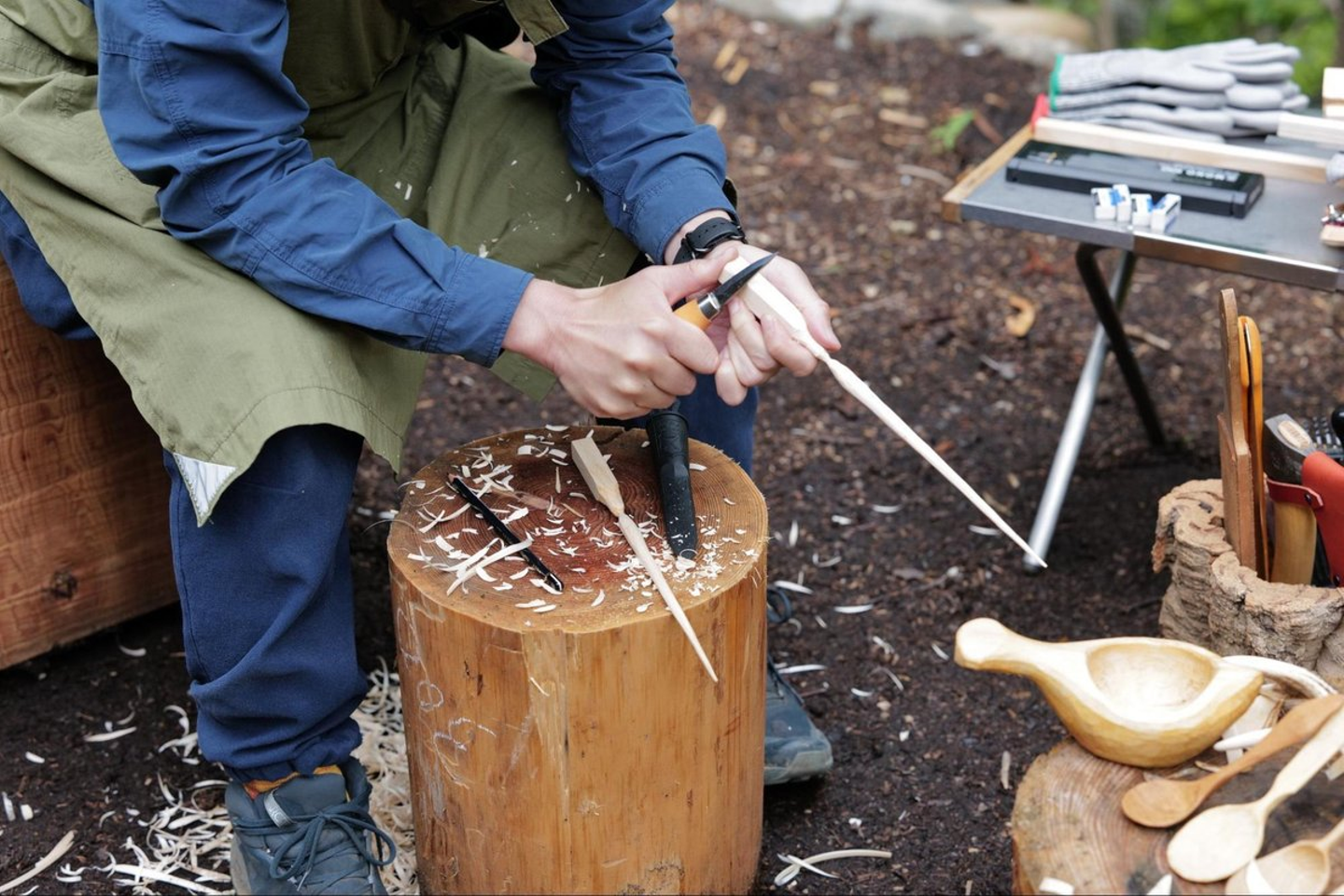 グリーンウッド(=生木)をナイフで割ったり、削ったりしてものづくりをすることを言います。
