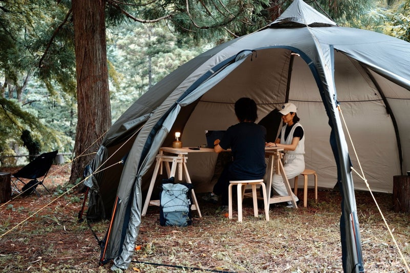 前回キャンプ場でアウトドアワークをして改めて実感した、自然の中の心地よさ。しかし「働く」を基準に考えてみると、キャンプ用品は十分とは言いがたく、ちゃんと働くことができる空間・家具については、見直す余地がありそうだとも同時に気づきました。