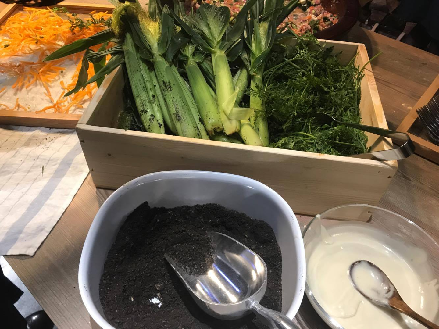 オープニングパーティーのフードメニューにはなんと食べれる土もありました!