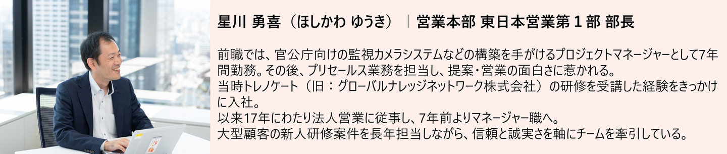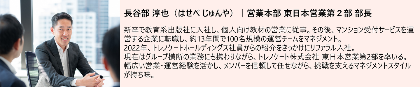 長谷部:「トレノケートの営業は、ITの知識よりも“聞く力”や“課題を整理する力”が求められます。お客様と一緒に考える姿勢が信頼につながっていくんです。」