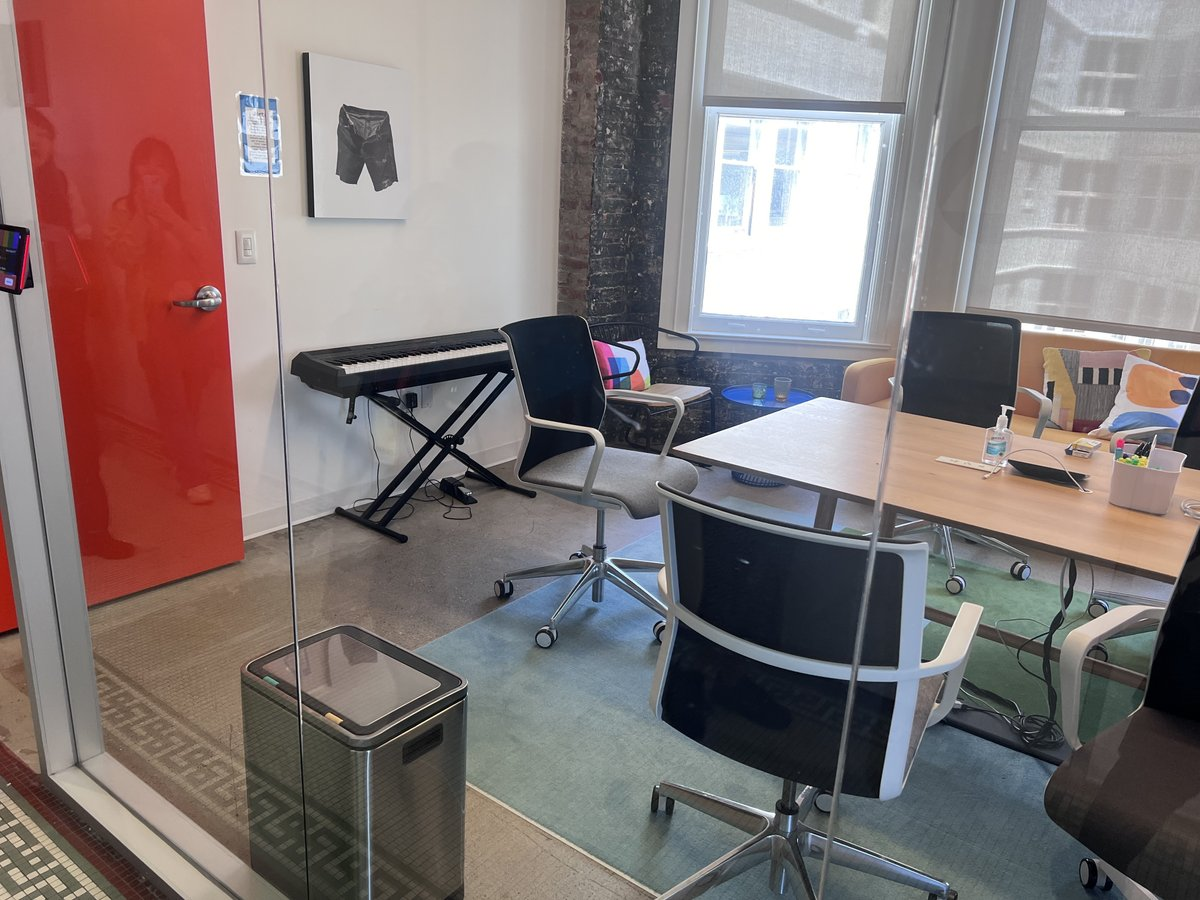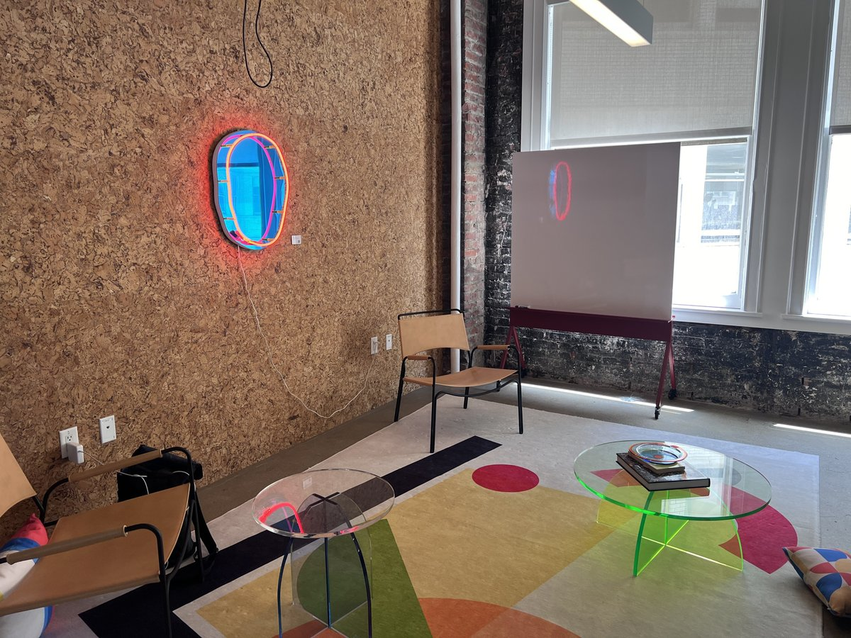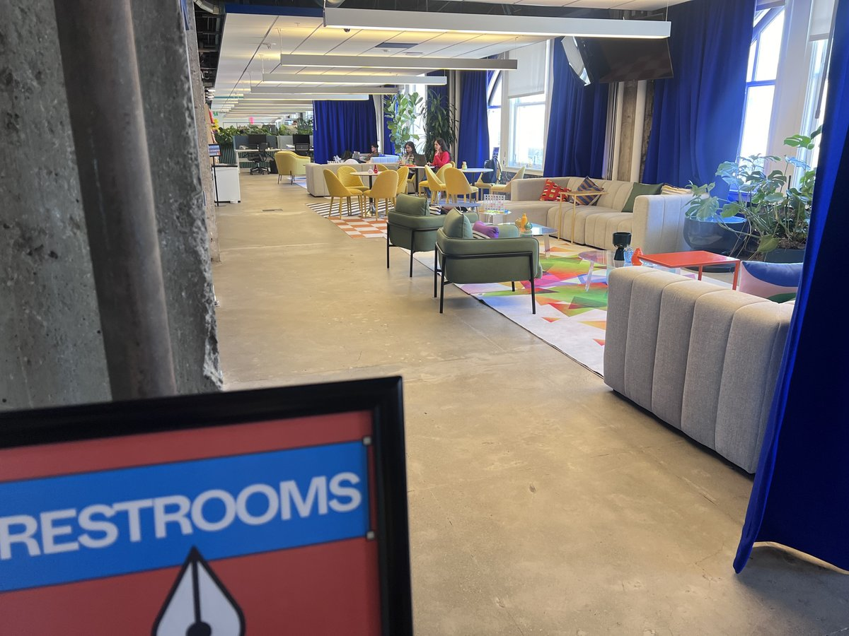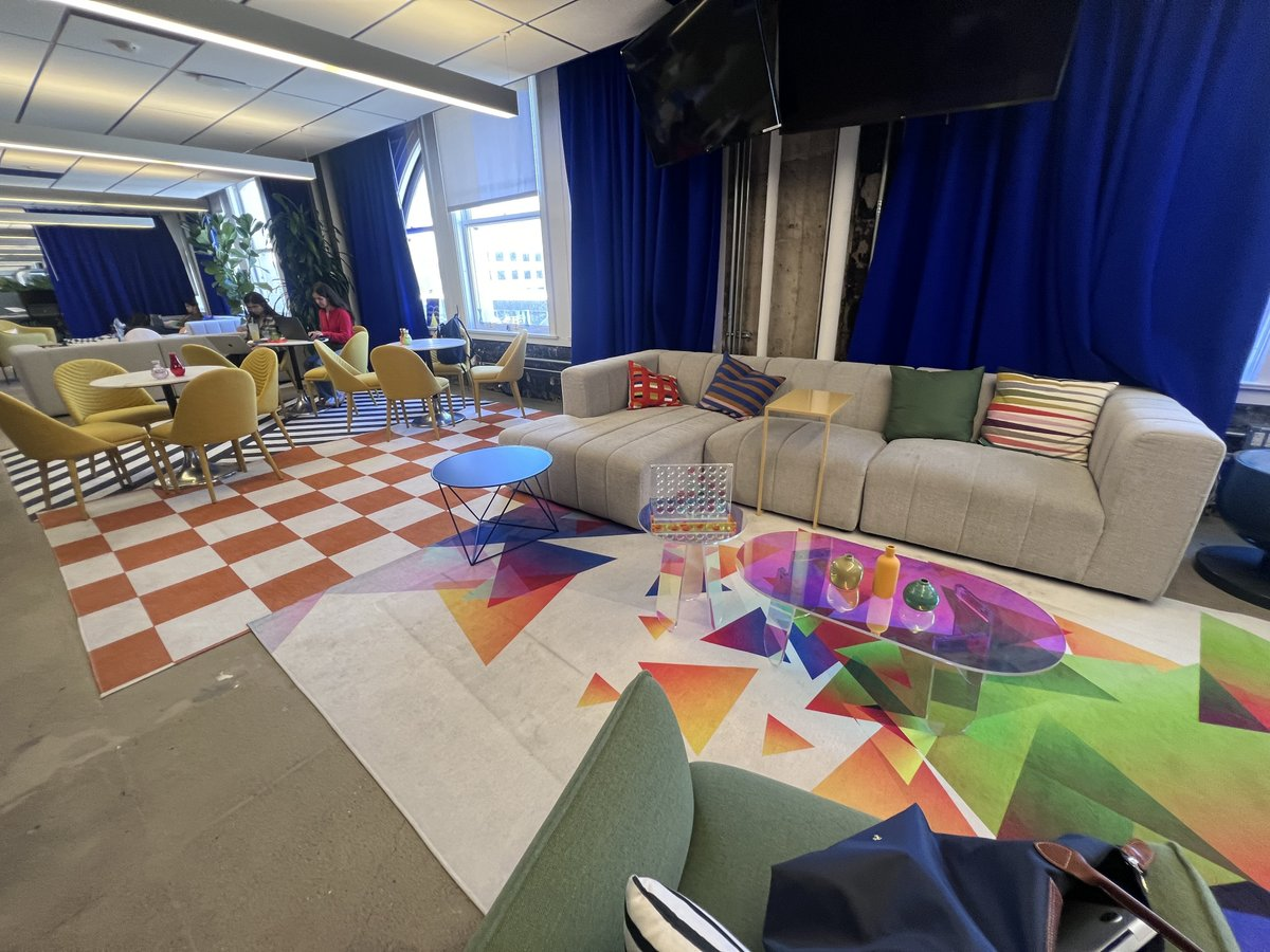 これまで私が見てきた綺麗なオフィスは、「このフロアはレストラン、このフロアはワークスペース、このフロアは会議室エリア」など、比較的フロアで機能が分かれているのを見てきましたが、Figmaの本社オフィスはそれと少し異なっていました。 ワークスペース横にリラックスエリアで会話しているスタッフの方がいたり、またその隣にワークスペースがあり、さらに隣には会議室で集まって会話しており、1フロアの中に様々な機能が交互に詰め込まれているとともに、チームやペアで会話をしている方が多くいるなと感じました。 ※この日はConfigのため世界中のFigmaからスタッフが本社に出社しているというタイミングもあったそうですが。 Figmaがコミュニティとの対話を大事にするように、社員同士の対話がとてもしやすい作りになっている印象でした。