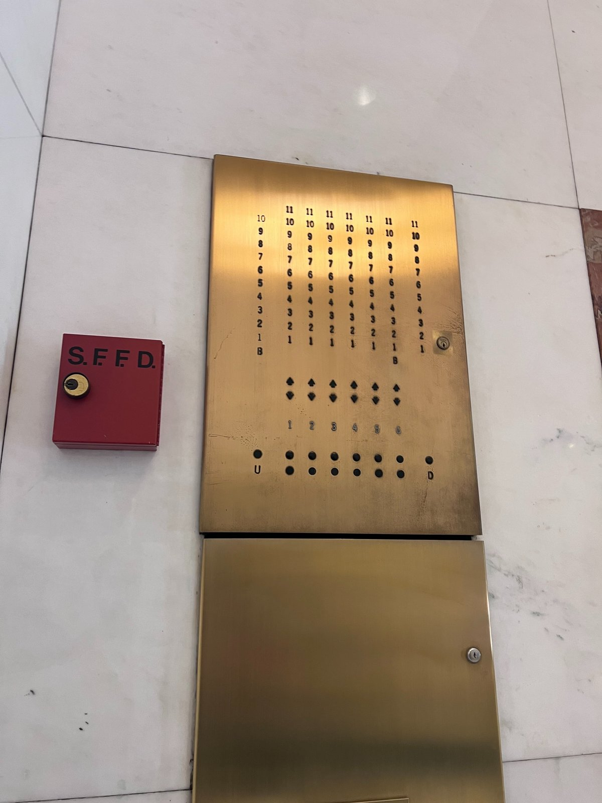 ▼エレベーターの表示板。アンティークってなんでこんなカッコいいのか。