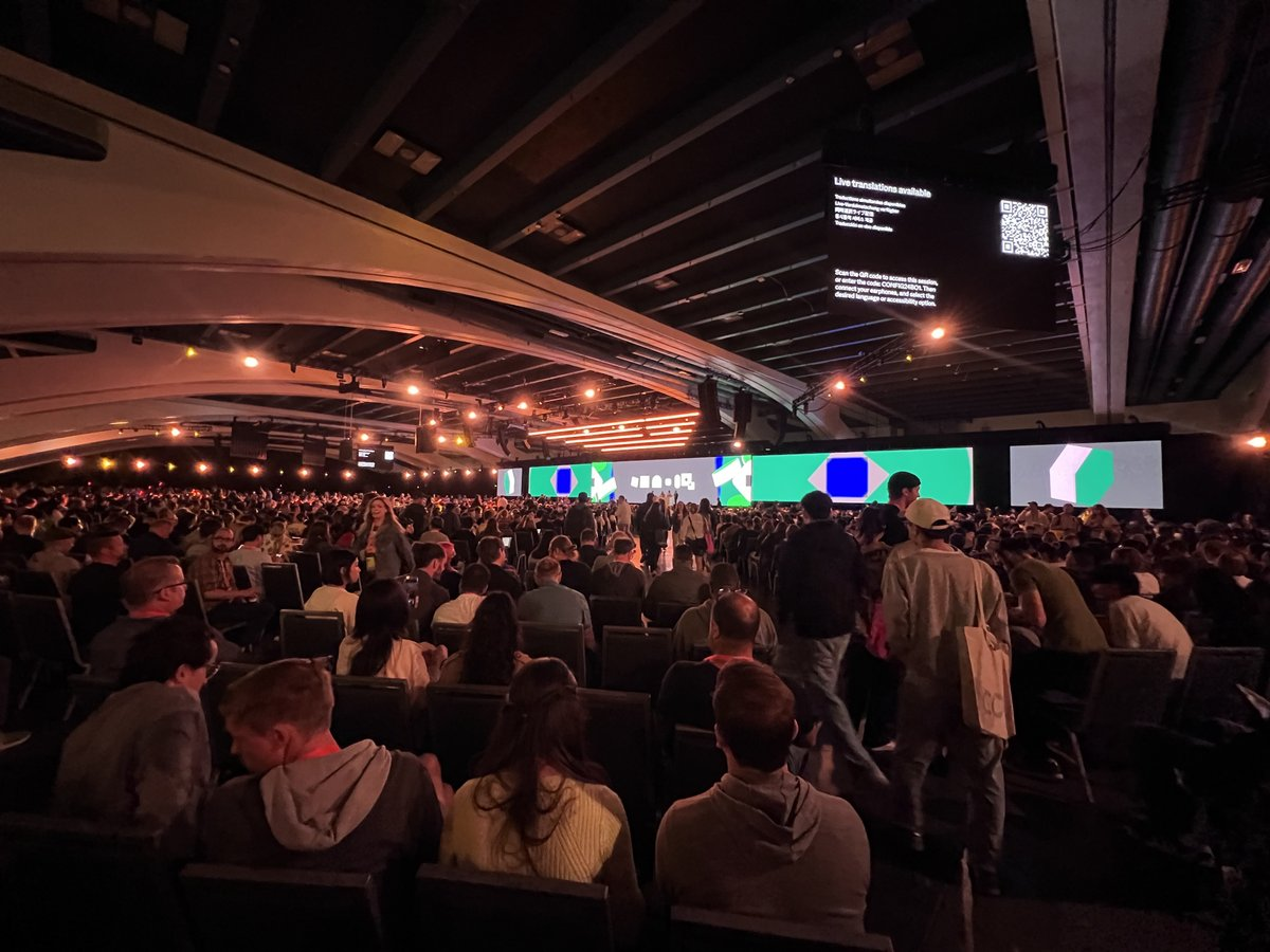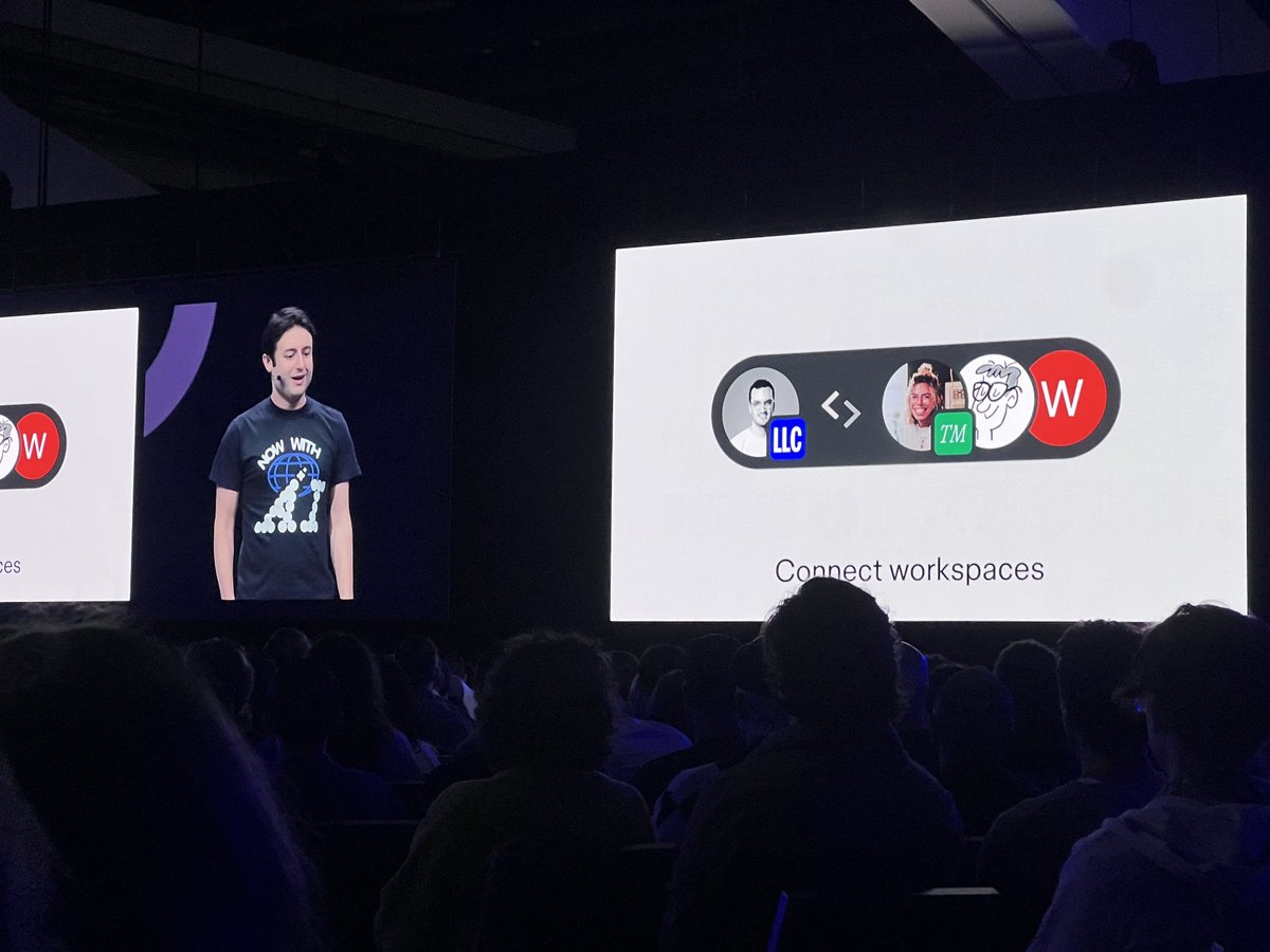 初日の朝一番9時から行われたキーノート。 開始前の会場は、まるでロックバンドのライブに来たのかという雰囲気! 会場中に響く音楽で気分も高揚するなか、カウントダウンが始まり、共同創業者でCEOのディランさんが登場!