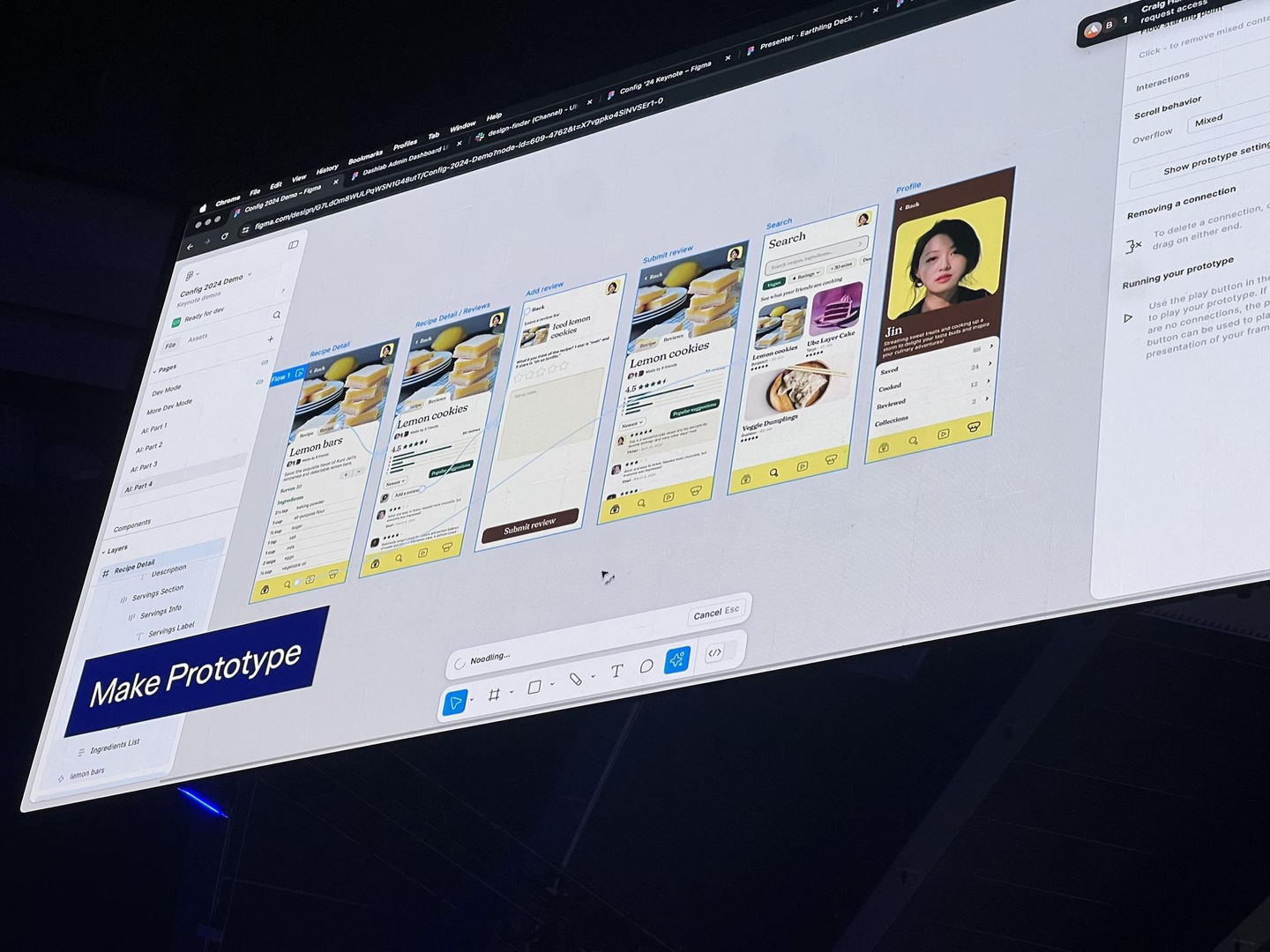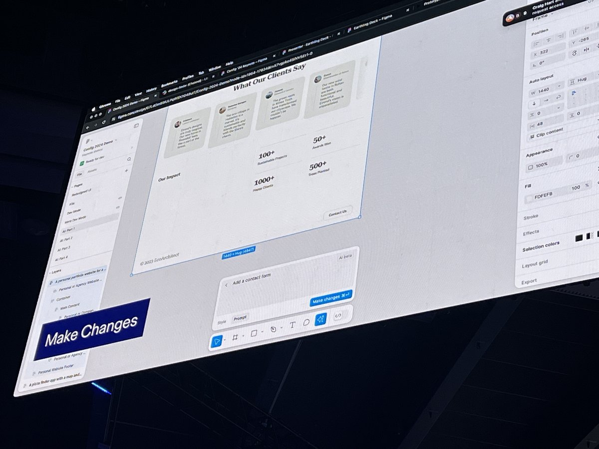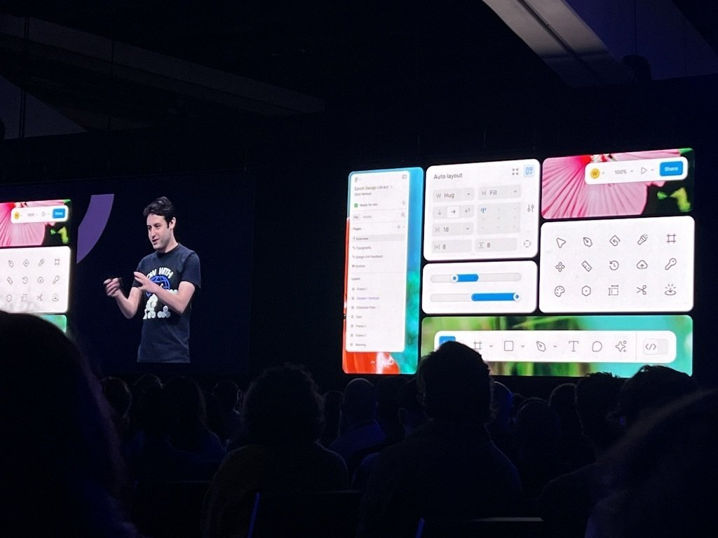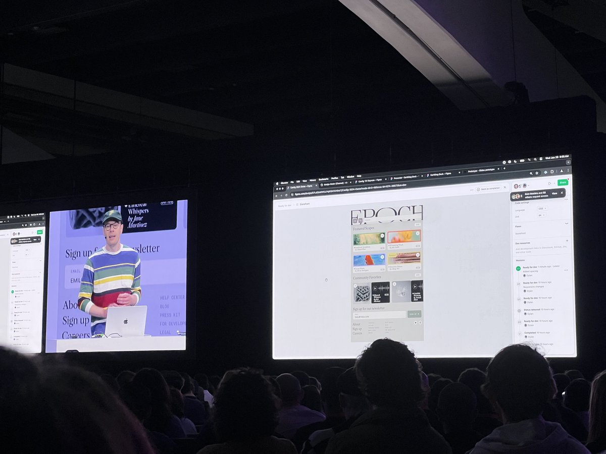 前段を話し終えると、Macbookの前に行きデモをはじめるディランさん。 コンセプトの話は控えめに、何が変わったのか機能中心の説明は、日頃からFigmaを愛用しているユーザーに向けたプレゼンテーションなんだなと感じました。
