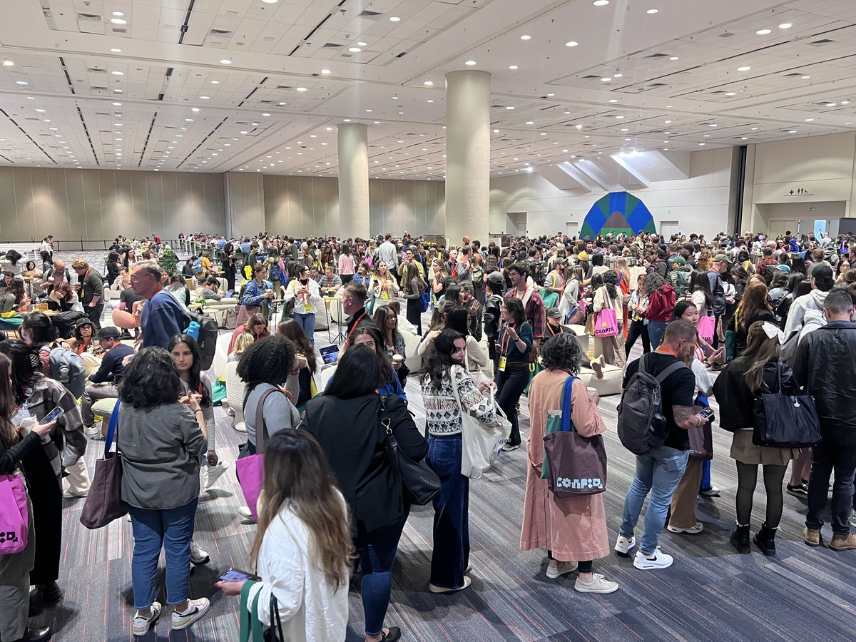 またグッズ販売(Swag)にも長蛇の列。 私も社内のFigmaチームにお土産をと思い、セッションをオンラインで聞きながら30分くらい並んでTシャツを何枚か買いました!(円安は一旦忘れておきました笑)。