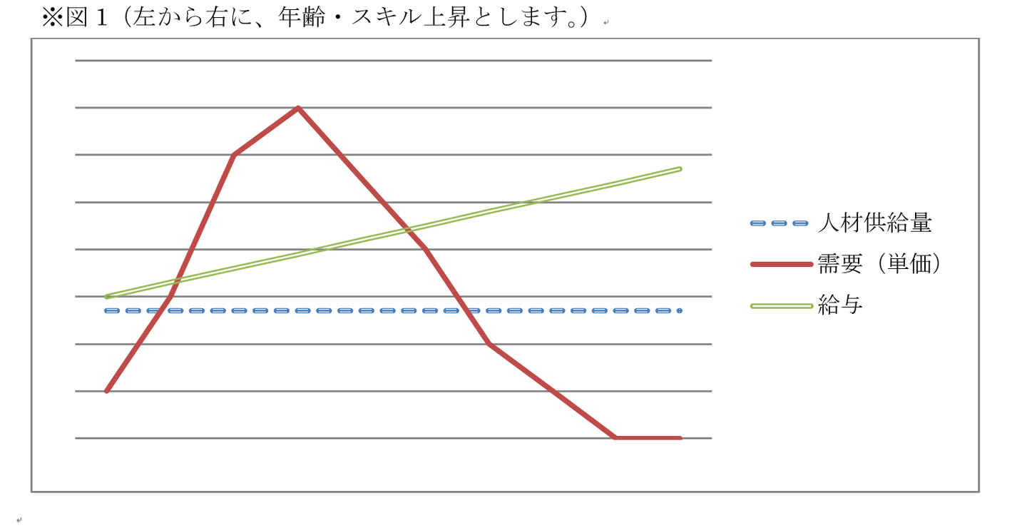 〇給与と需要の関係が逆転したタイミングで、いわゆるリストラ対象となります。