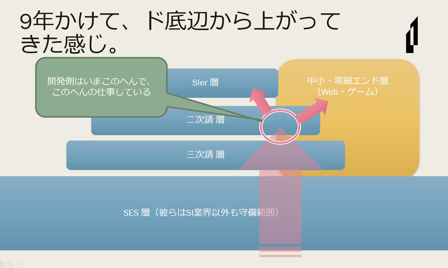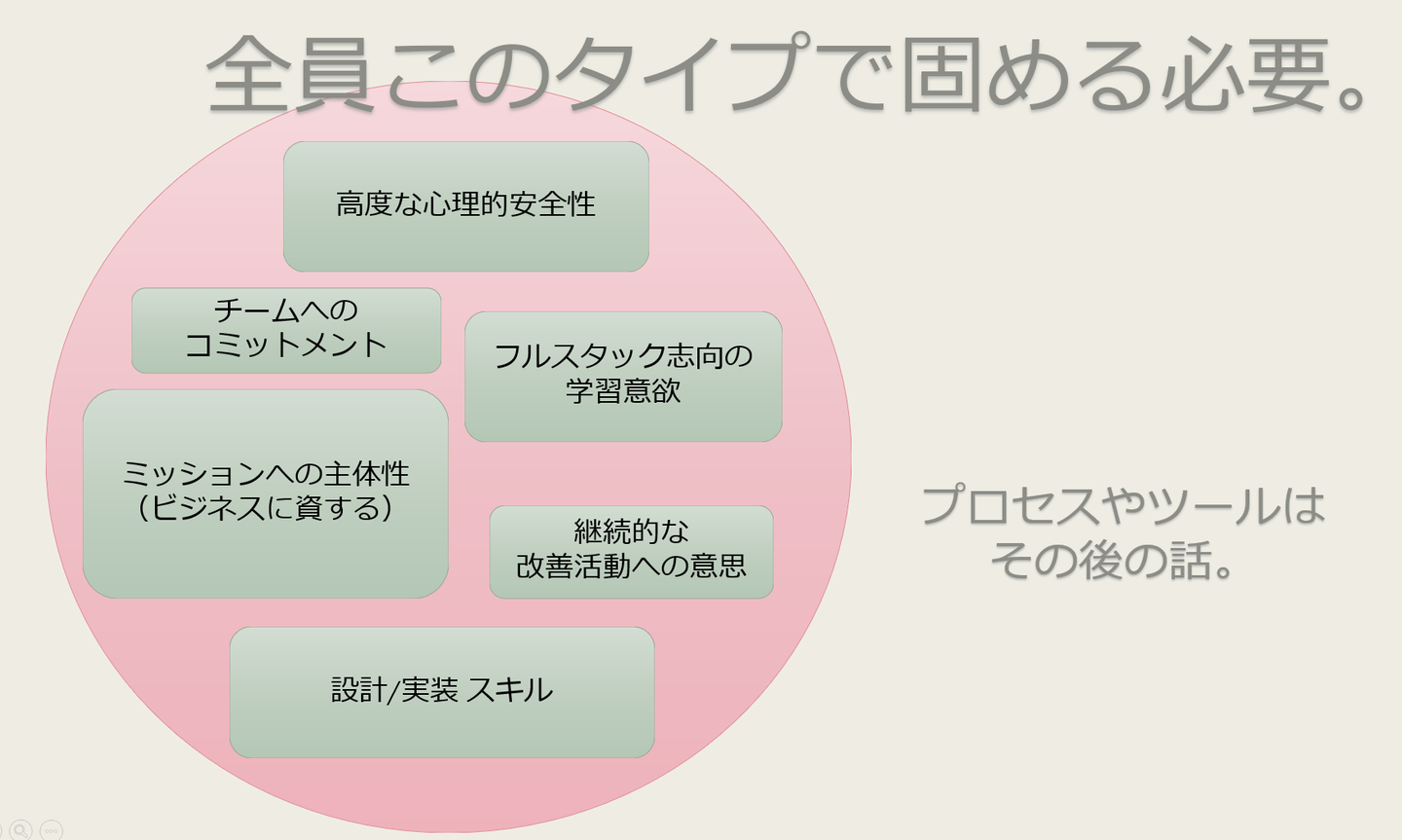 そんな人を採用し、会社と労働者がお互いに投資しあえる構造を作れれば、当面の育成方法やチャネルはそれまでの経験で用意できていたので、重力を振り切ってSES領域を脱出できるであろうと考えました。