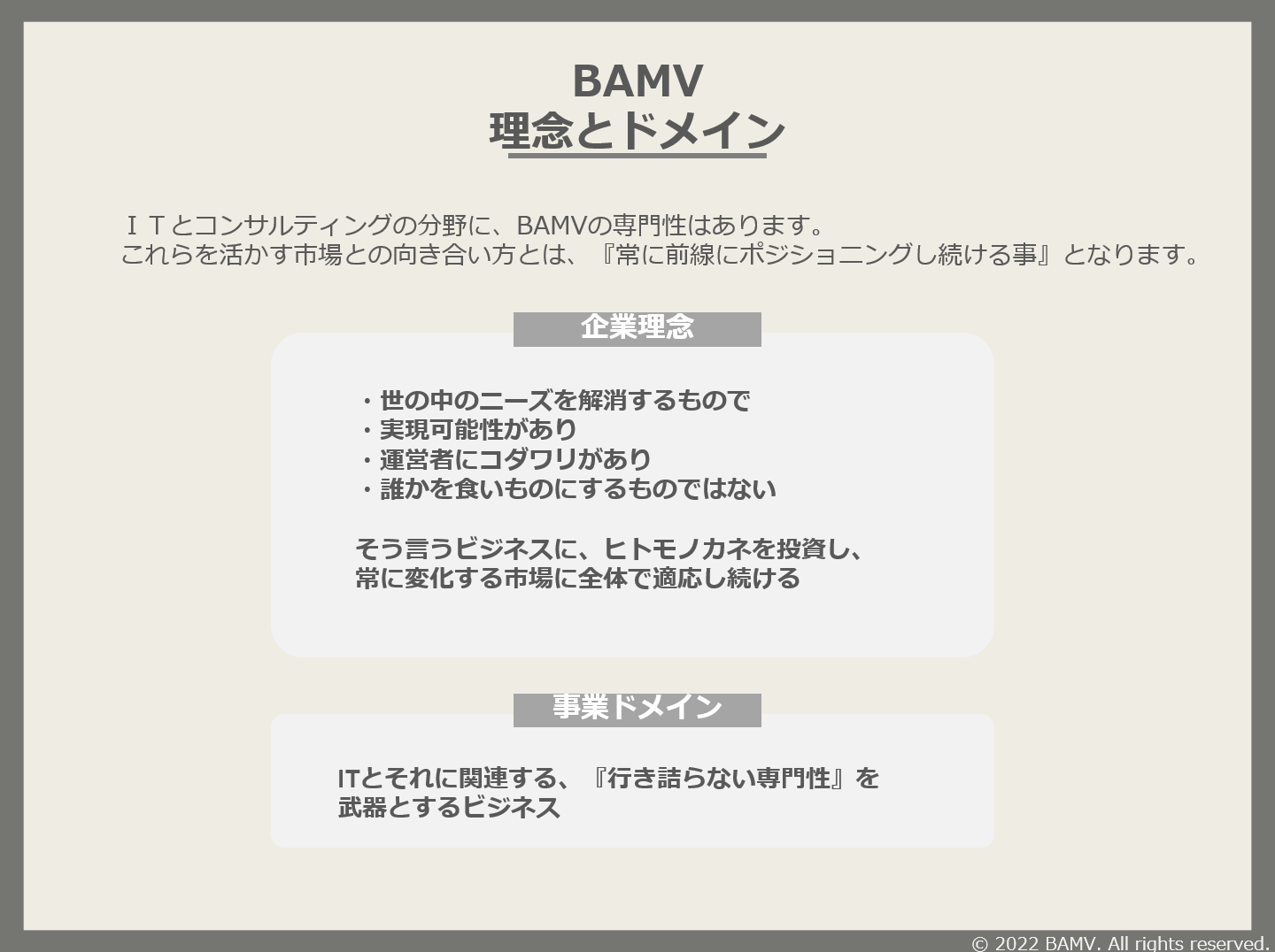 (BAMV・バンブ) ”Build Again Make Value” もう一度構築し、価値を生み出す。