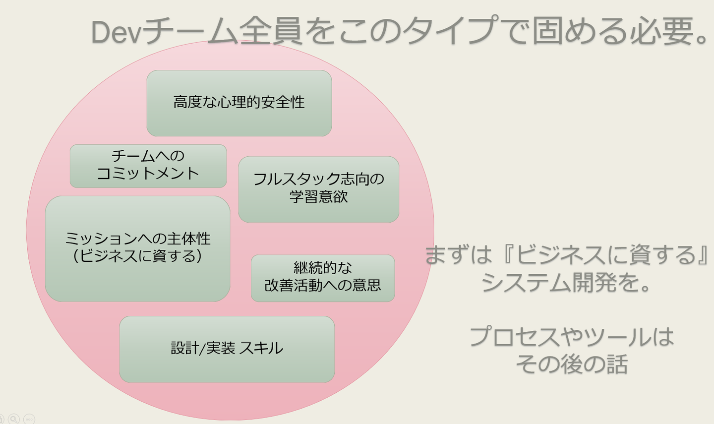 SIerとは違い、大規模システム開発を効率的に突き詰めてきた背景も無いので、多くは開発組織が未成熟で、開発部隊には高い自律性と継続性が重視される。というわけで、課題解決が『アジャイルチームの投入』となる。