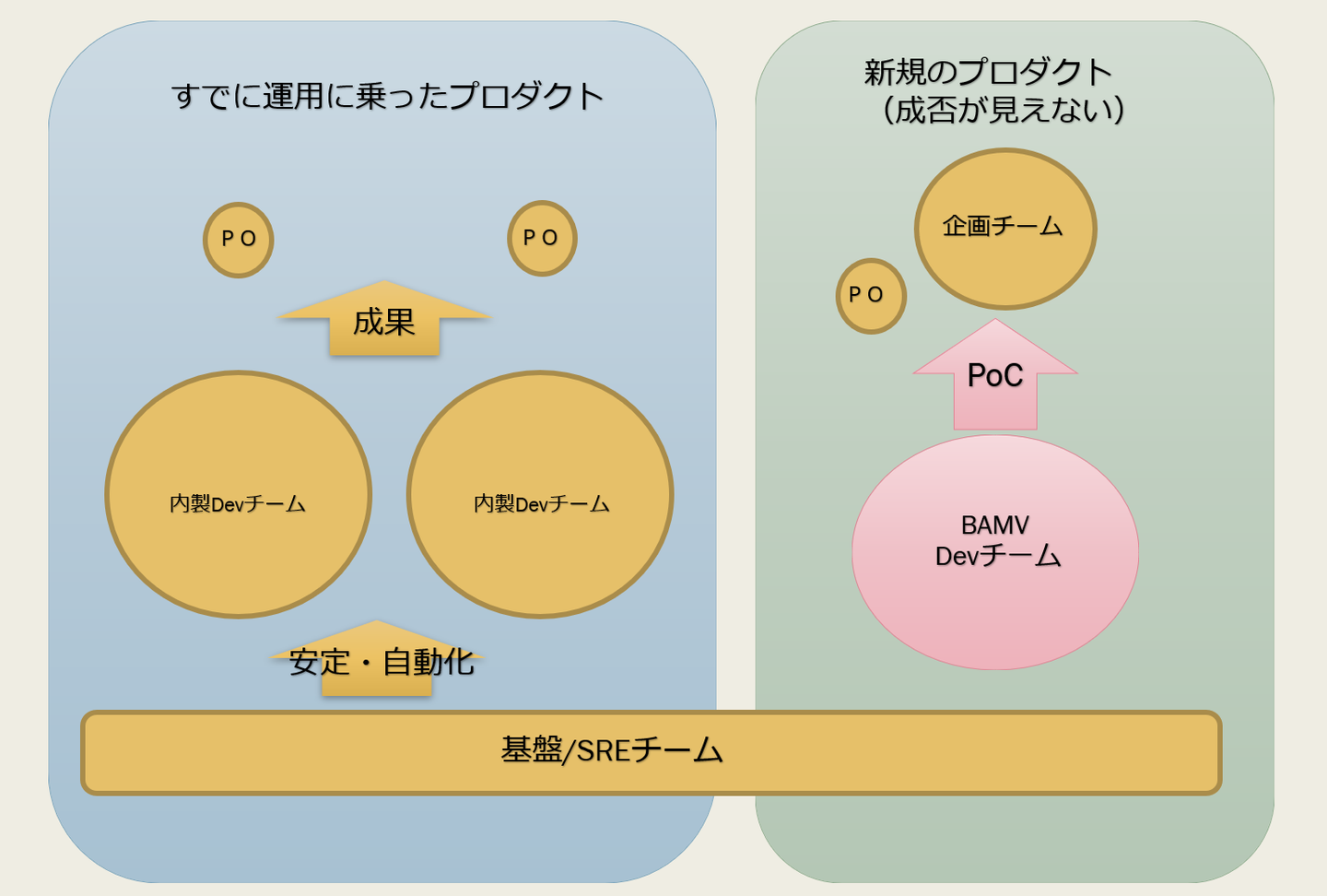 ・運用に乗るかわからないプロダクトは外部Devチームで。運用は内製Devチームで。