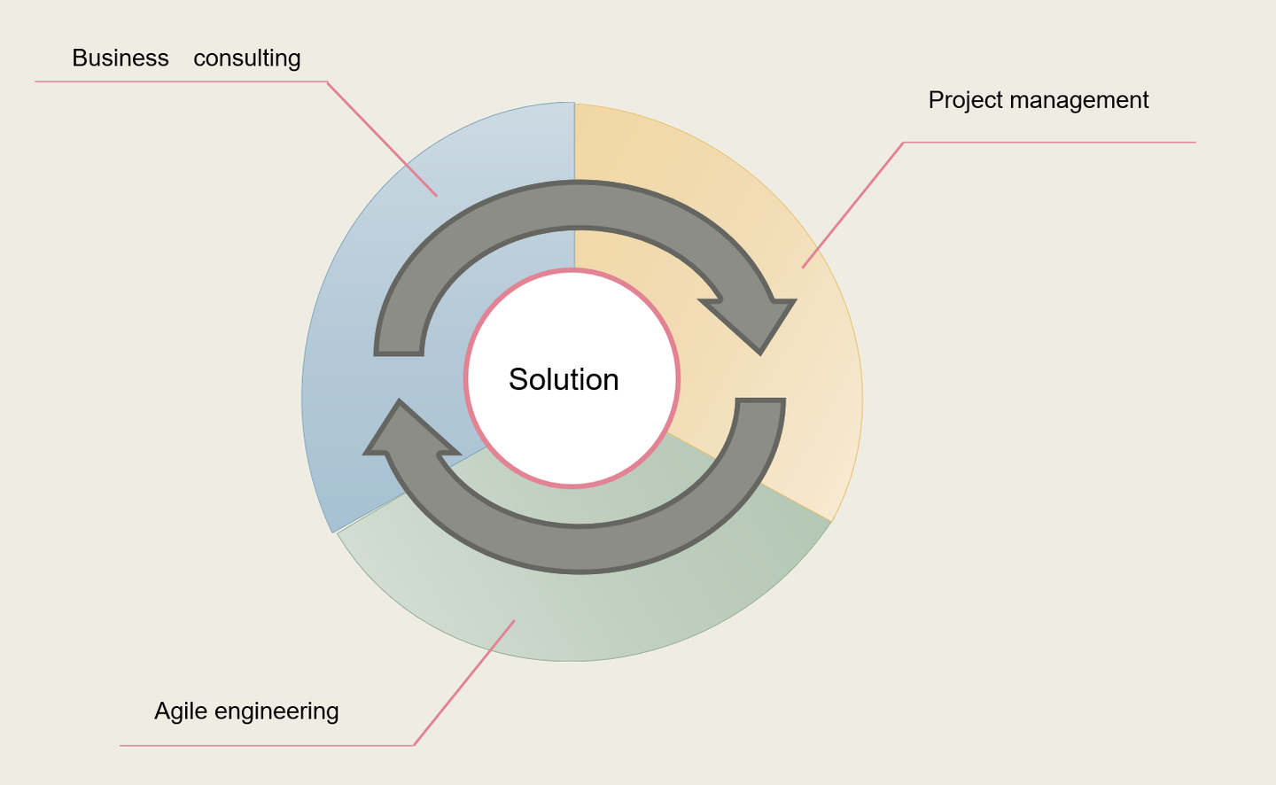 ビジネス上の課題の発生~ITによる解決までを、包括的・シームレスに援護する。
