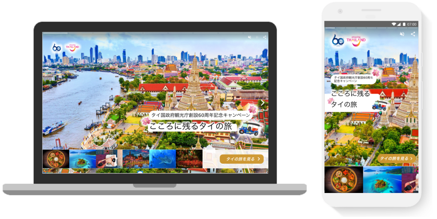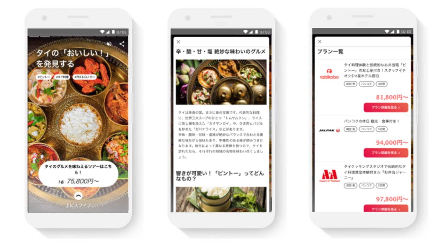 なお活用事例の第一弾として、2020年4月1日より、タイ国政府観光庁「創設60周年記念キャンペーン」にて「Visual Story Promotion」を実施しております。Web Storiesフォーマットで公開されたタイアップ広告事例は、国内初となります。(*)
