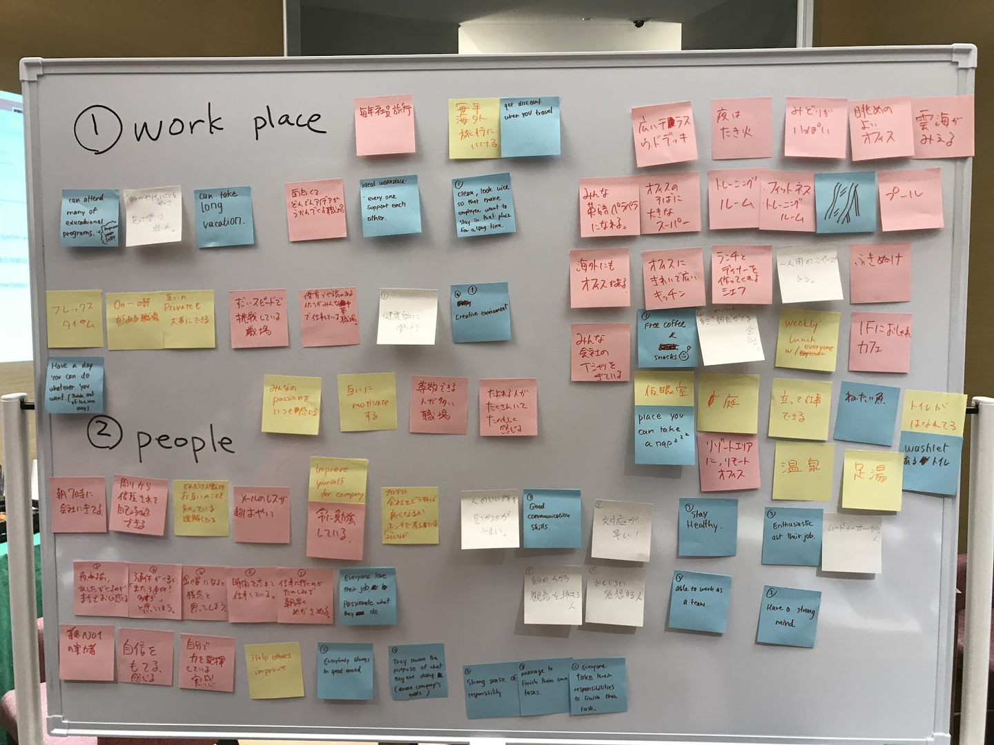 そのあと、理想の職場とそこで働く理想的な社員についてもみんなで話し合いました。