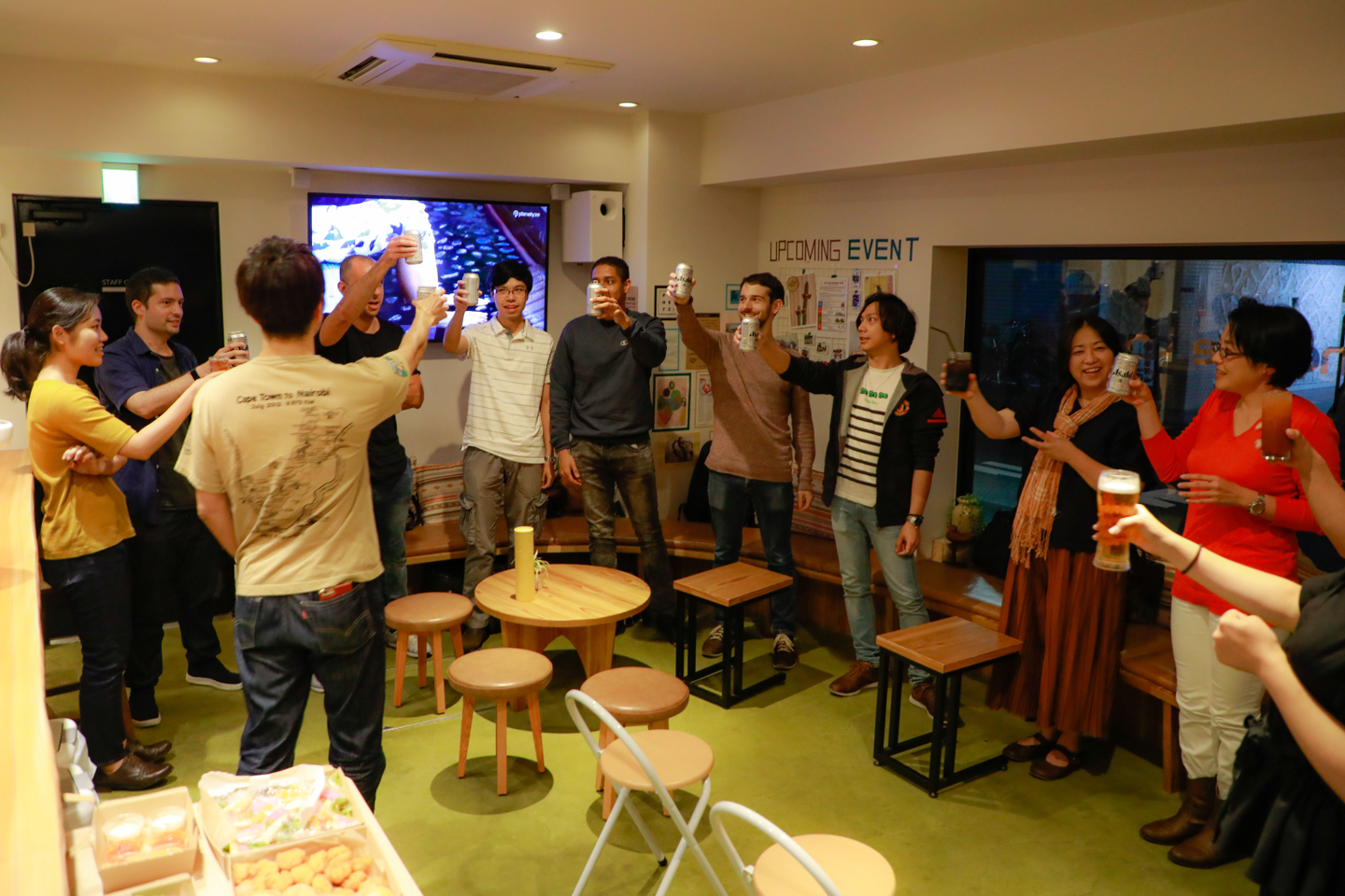 普段リモートで働いているパートのスタッフさんにもご参加いただき、みんなで乾杯!