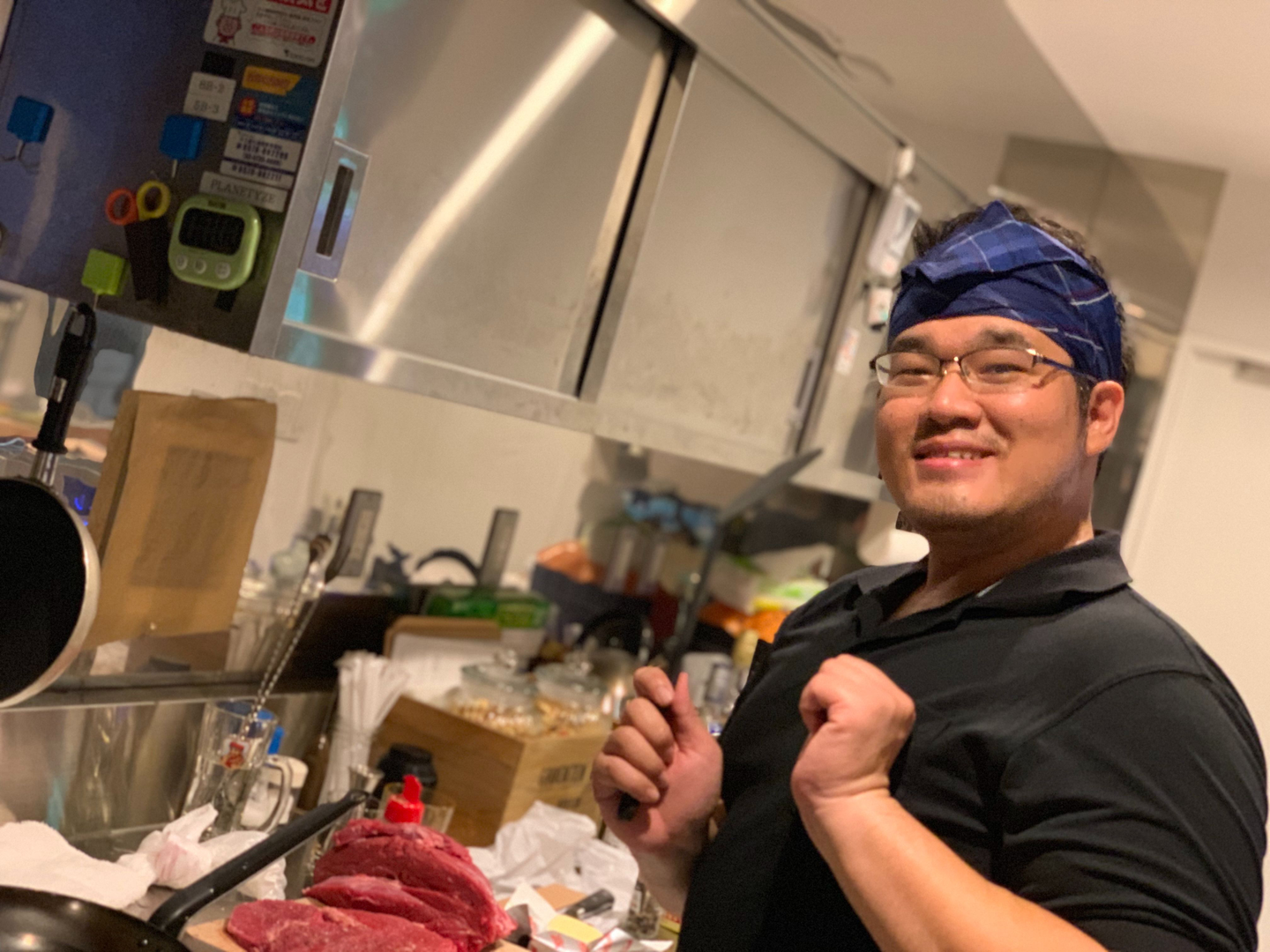 このお肉をプロ顔負けの調理をしてくれたタイ人ビデオクリエイターのスティポン。ローストビーフ絶品でした。ありがとう!