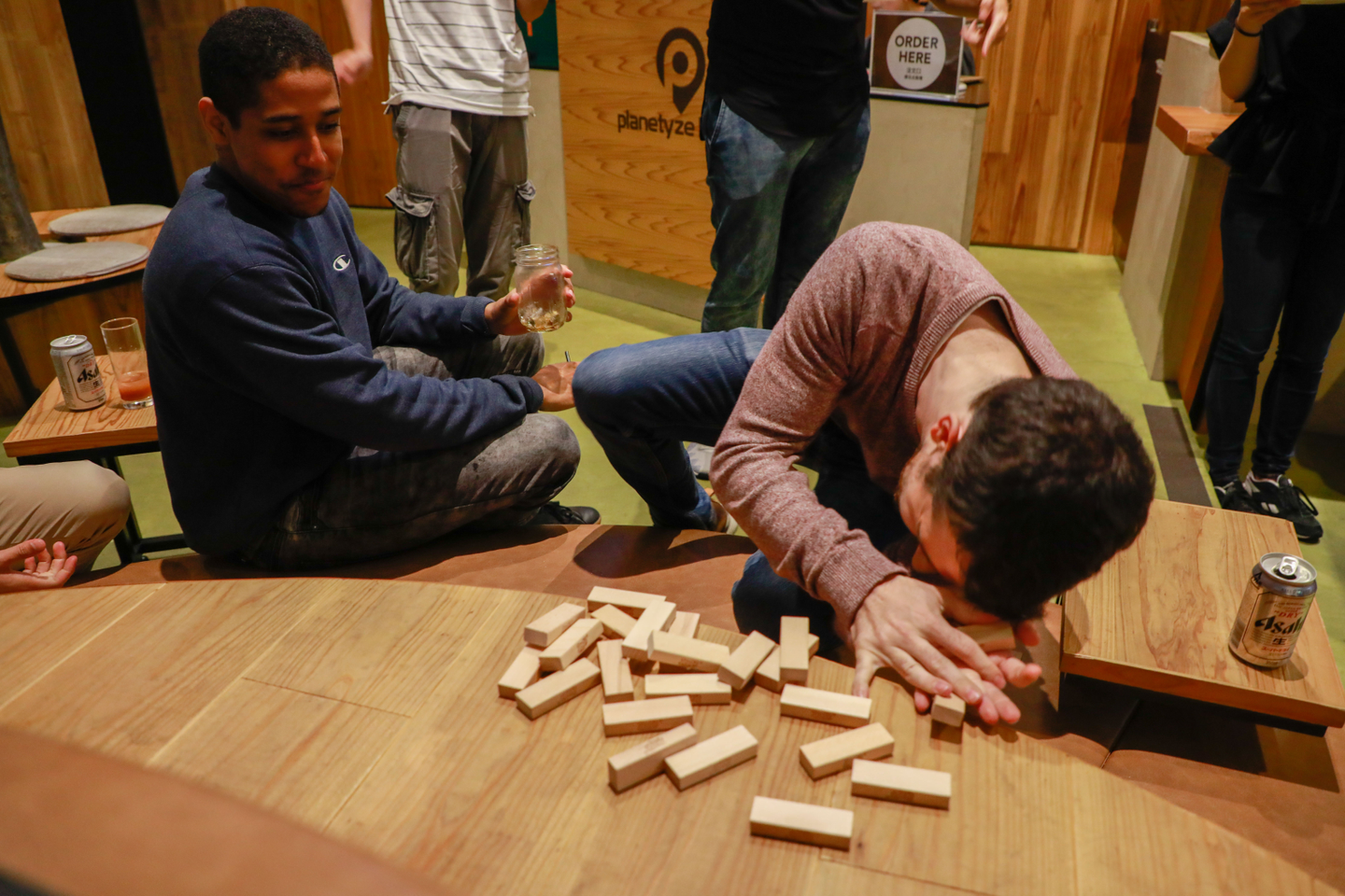 いい具合に酔っ払ってきたところでみんなでジェンガ。