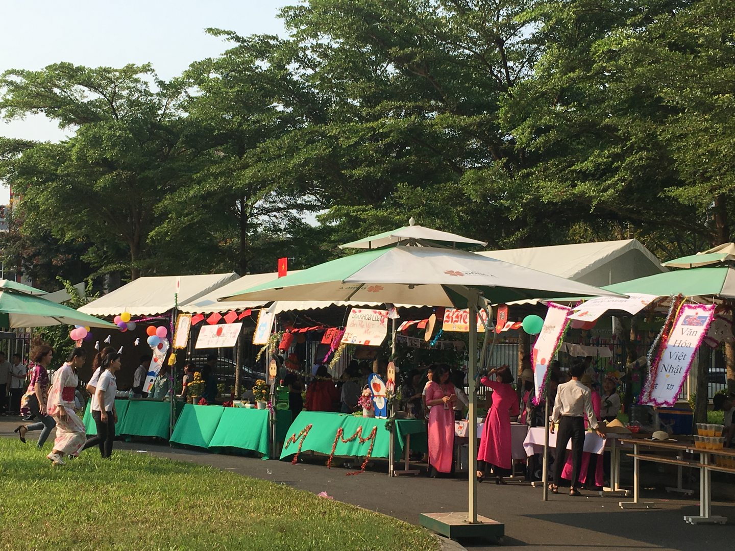 まあ具体的にどんなフェアなのかと言いますと、日系企業の方がいらっしゃって先生や生徒たちとお話ししたり、日本から様々な文化人の方々(書道家の方等々)がいらっしゃってパフォーマンスやミニ授業を開催されたりと、日越交流を行う場といった感じです。