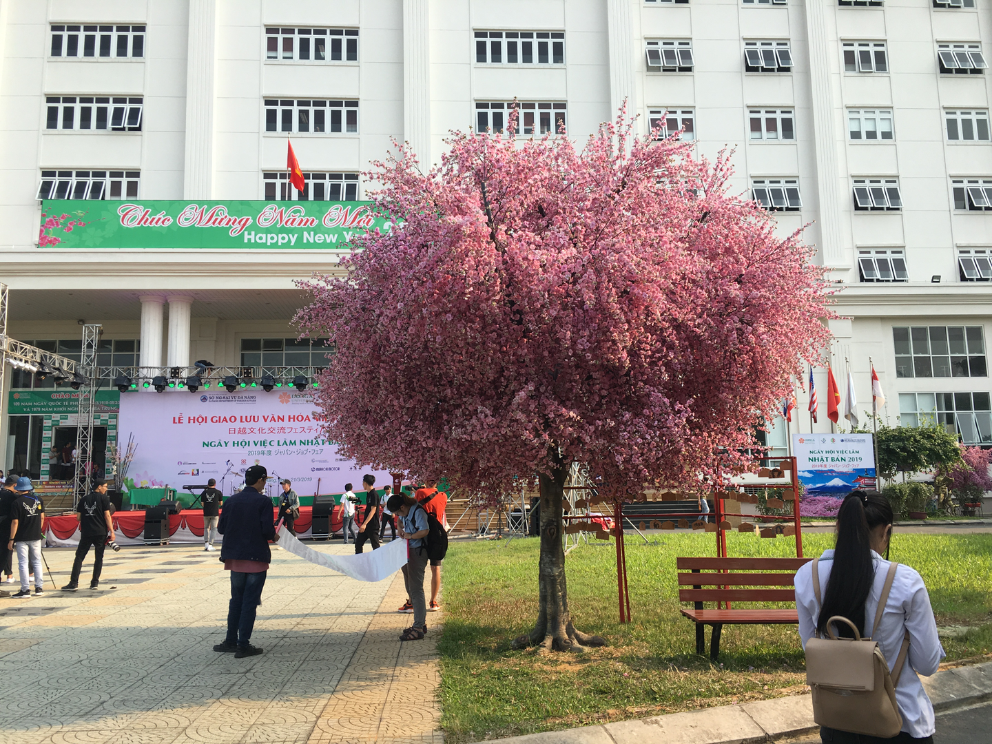 僕はベトナムにいるのでわからないのですが、いまの時期日本では桜が咲き始めていますでしょうか。ベトナムでも桜の造花が植えられていました。