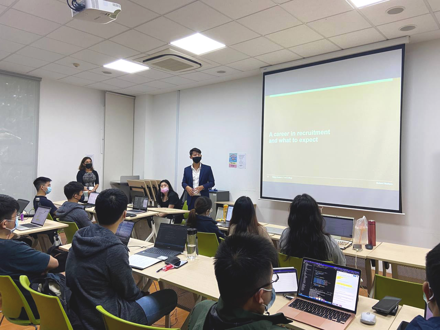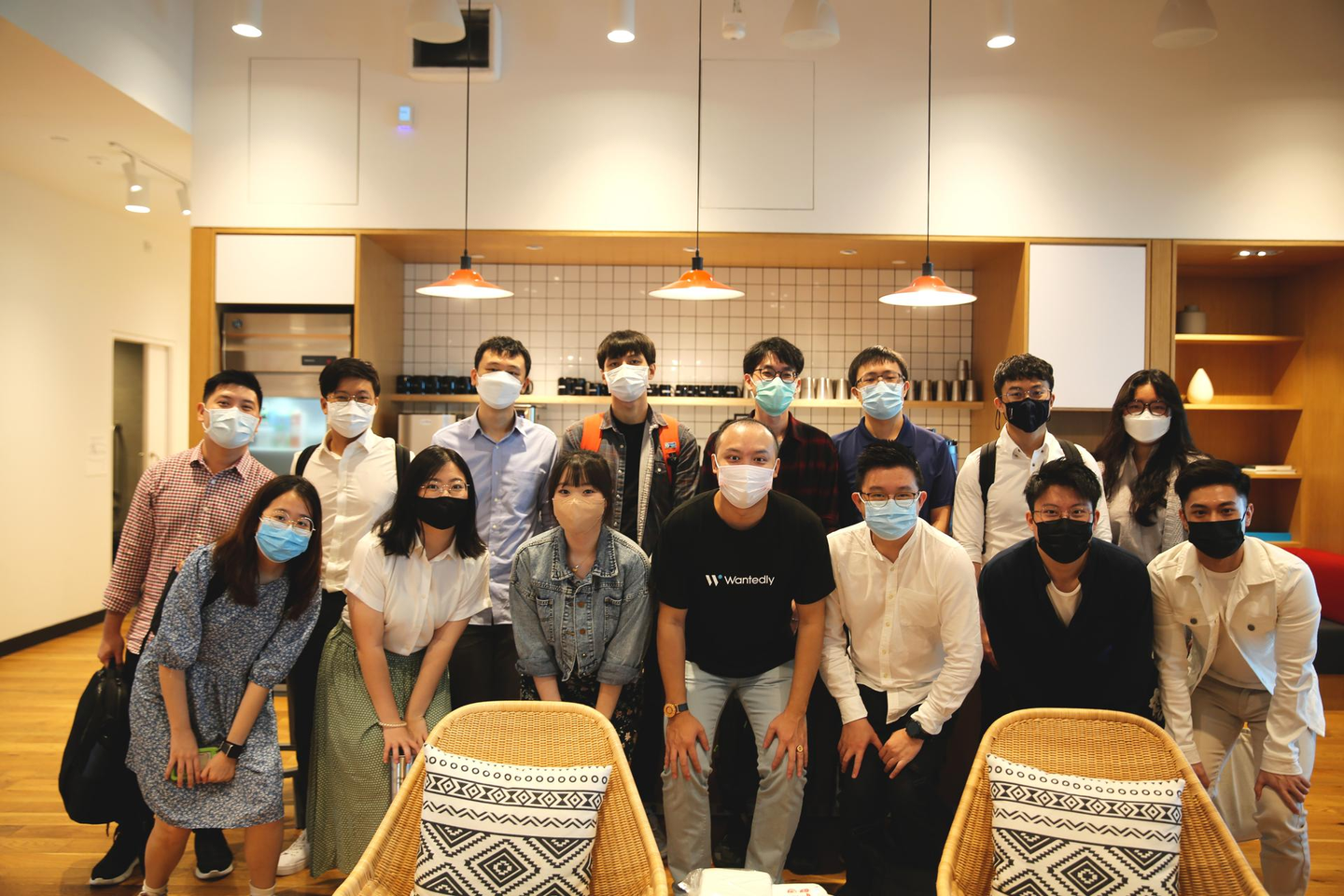 Wesley (third from the left, 2nd row) and his course mates during a company visit to Wantedly Singapore’s Office