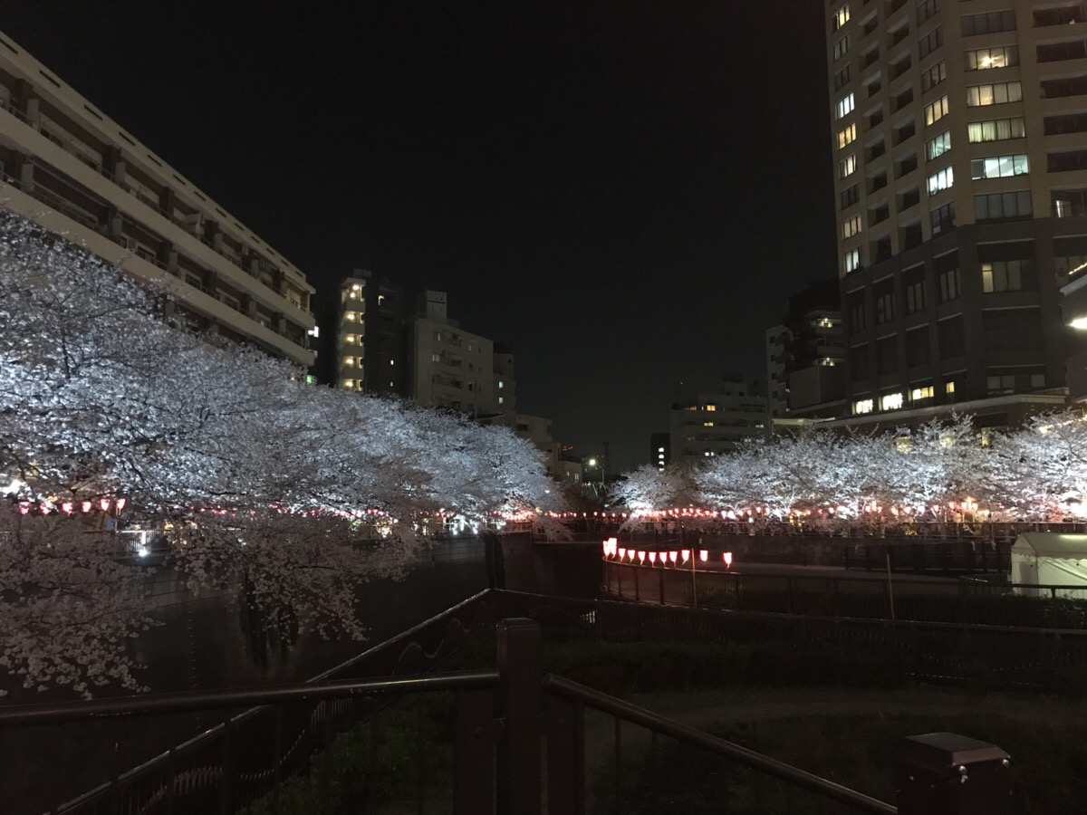 目黒川の桜並木はいつの間にか満開になっていて、24日からはライトアップもスタートしていたので