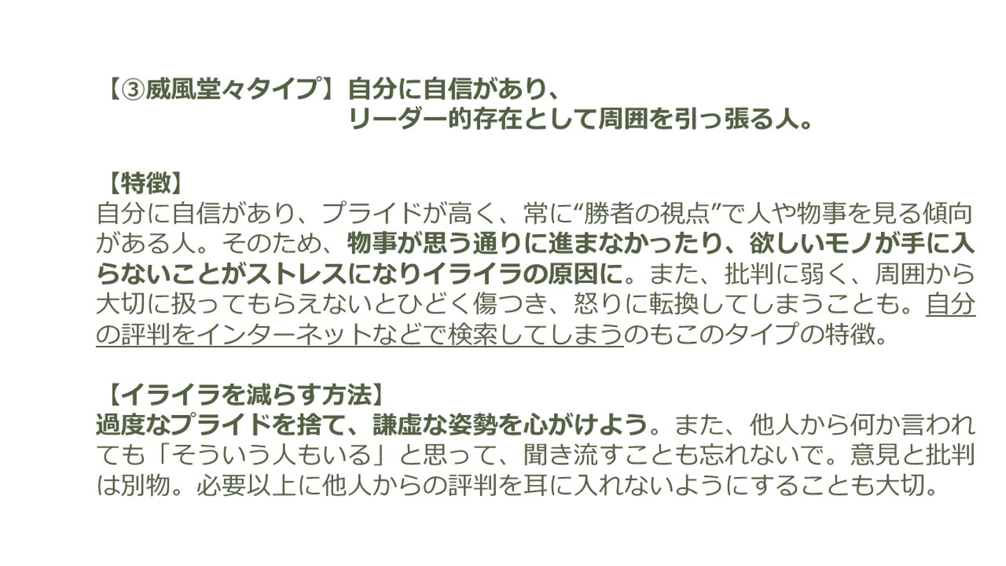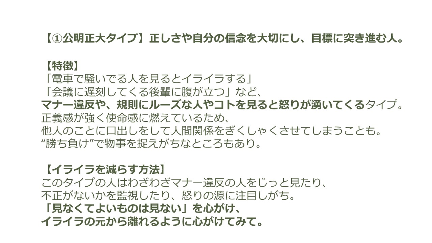 自分がどのタイプか知り、イライラ対策もわかりこの場は大盛り上がりでした!