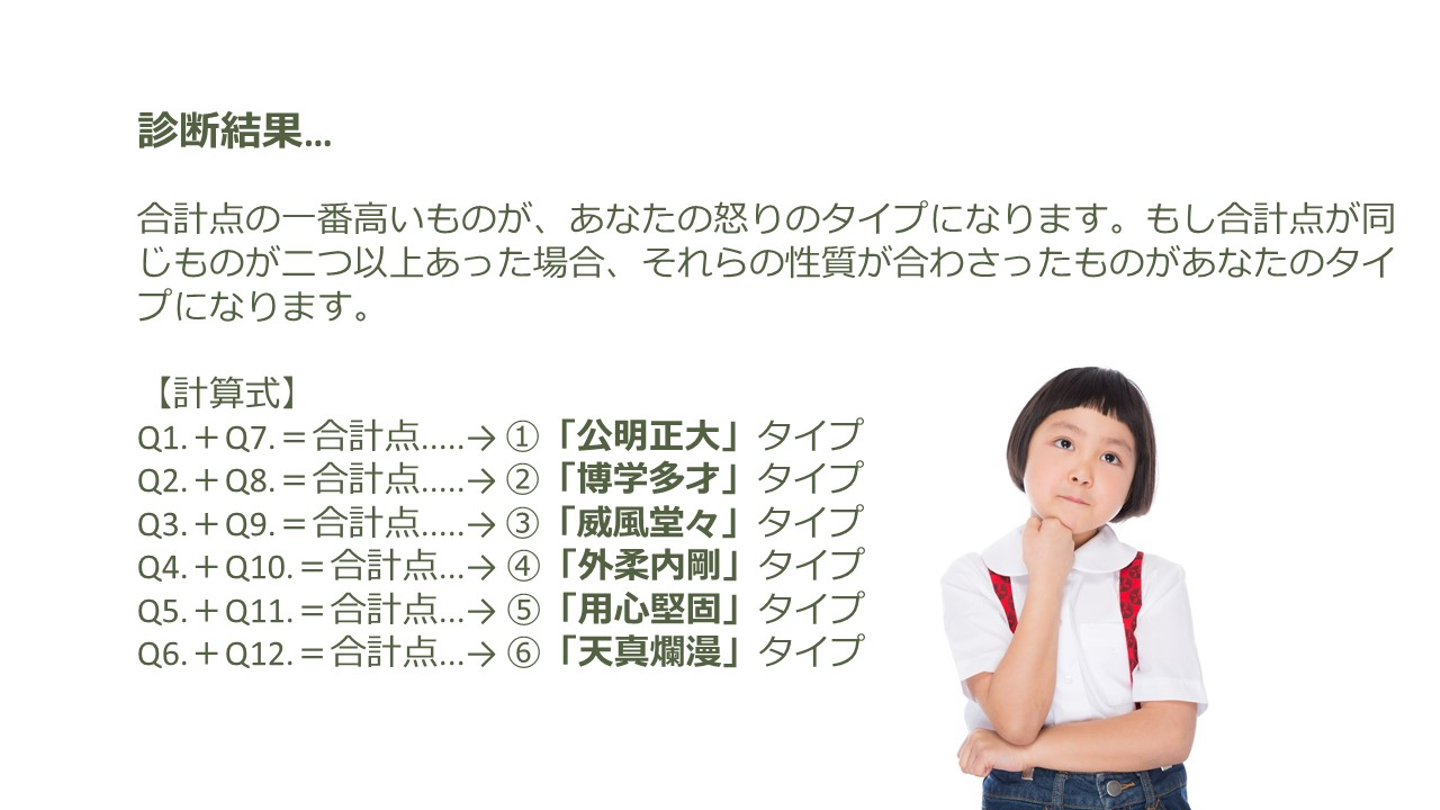 怒りのタイプは大きく分けると6つあります。あなたの怒りのタイプを調べてみましょう。