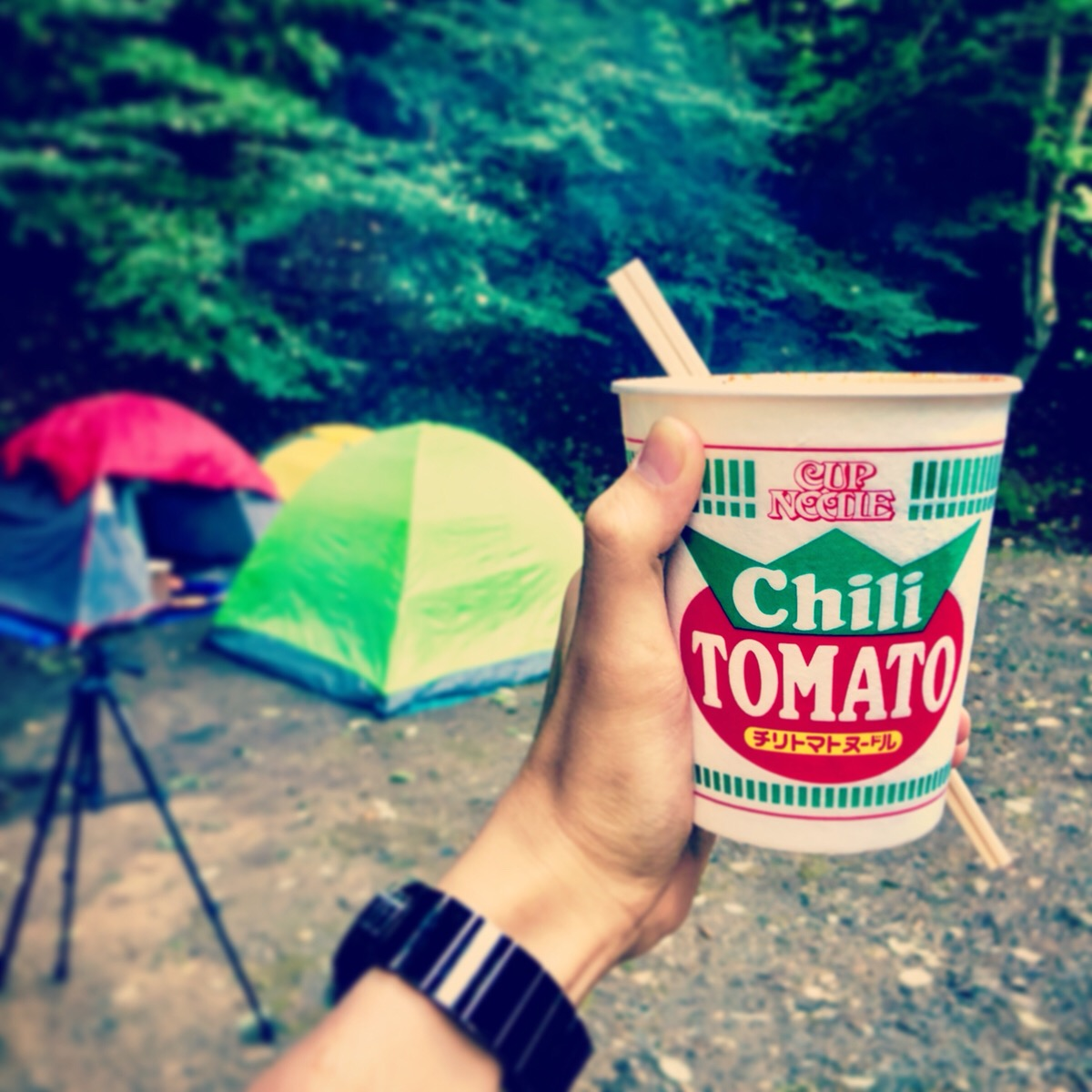 翌日の朝ごはんは予め用意しておいたカップヌードルを!あえて全員日清のカップヌードルで縛りました(味は自由)