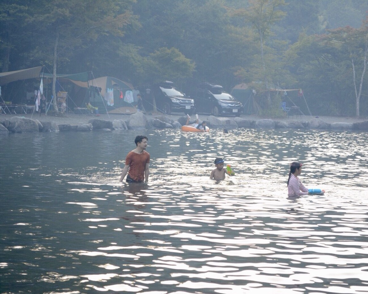 川は流れが急で入れなかったのでプールのような池で遊ぶことに。主に子供が多く遊んでいたので柄にもなくちっちゃい子に絡まれて小一時間一緒に遊びました。