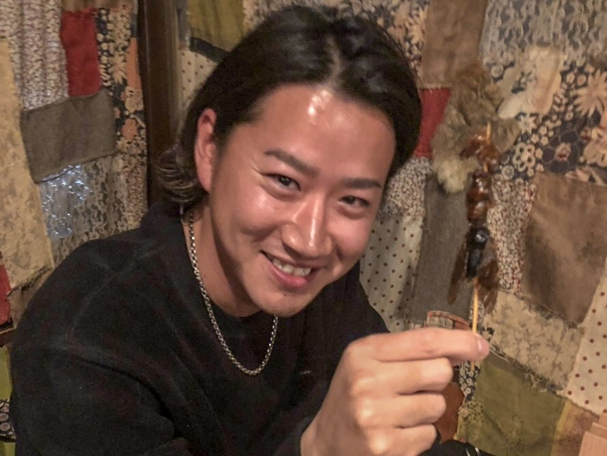 ここまで爽やかな顔をされると、持っている串が焼き鳥に見えますね。