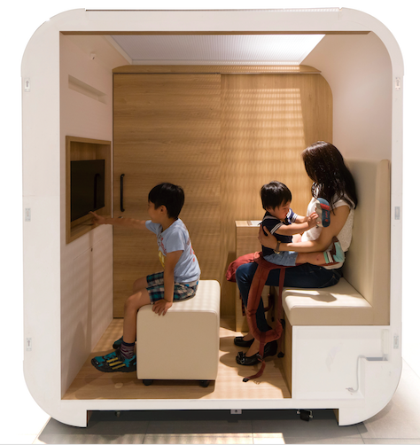 スマートナーシングルーム「mamaro」は、どこでも手軽に設置でき、