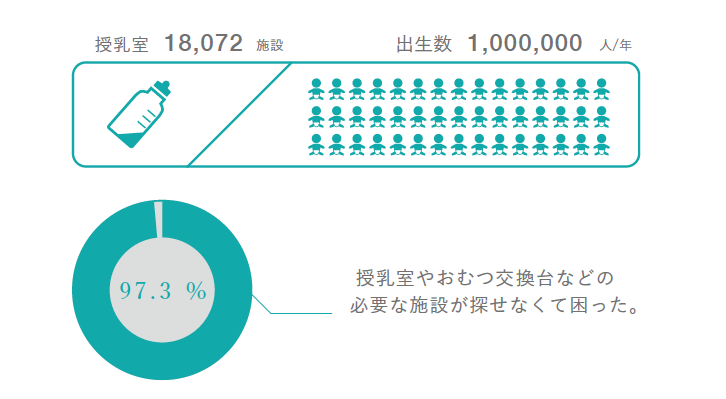 なんと100人の赤ちゃんに対して、1つの施設の割合しか授乳室がないのが現状なんです。