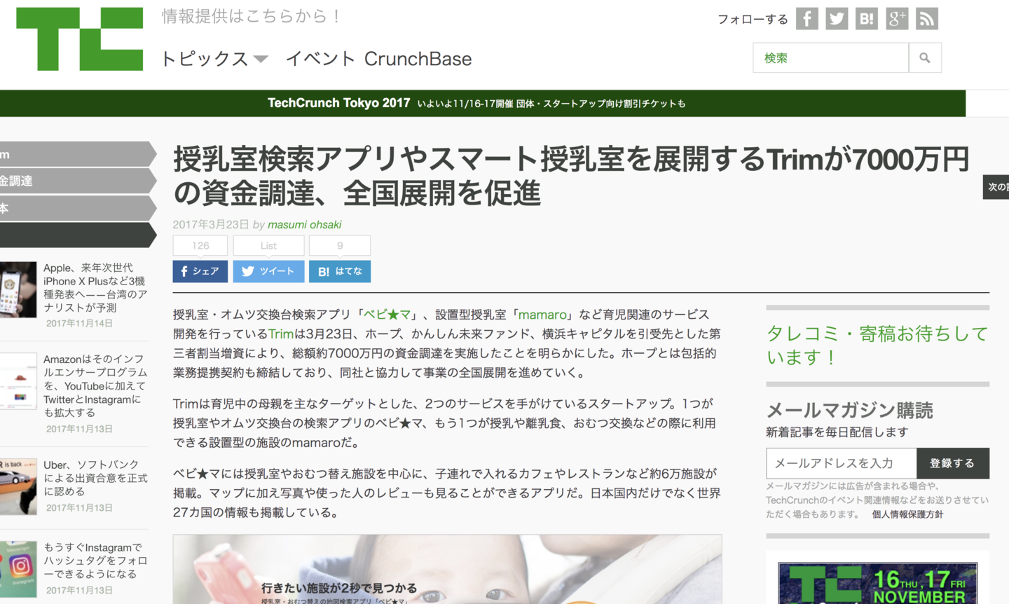 At that time, the app was collecting information about the availability of diaper changing and nursing rooms from all around the country through the mothers who used them and then published the information on the app. I was deeply impressed seeing by it so I was strongly determined to turn it into a real business.