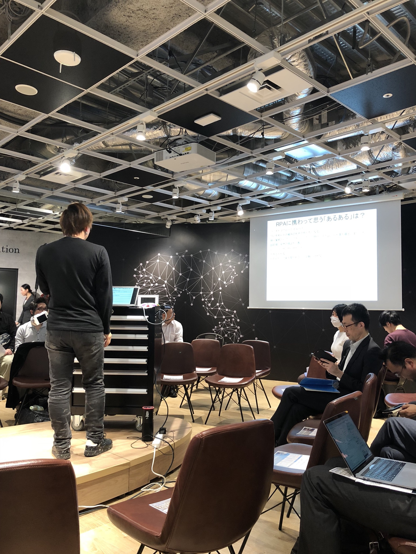 今日は行ったのは、なんと業界初のRPAコミュニティ(かもしれない)が主催したRPA勉強会&LT会です。一緒に行ったのは、現在RPAの開発現場に入っている2人の新人AryaとAnitaです。