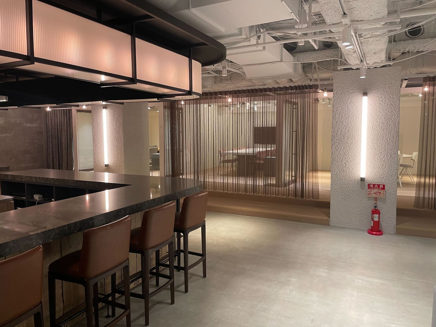 バーカウンターでは、社員の方々がパソコンで仕事していたり、実際にお酒も置いてあったりして。こんな最高の環境だと、仕事が捗るだろうな。