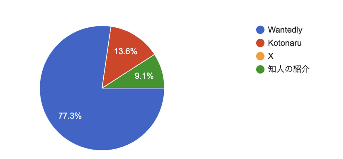 Wantedlyで募集を見かけて興味を持った方が大半でした。Kotonaru経由で弊社を知った方もいます。